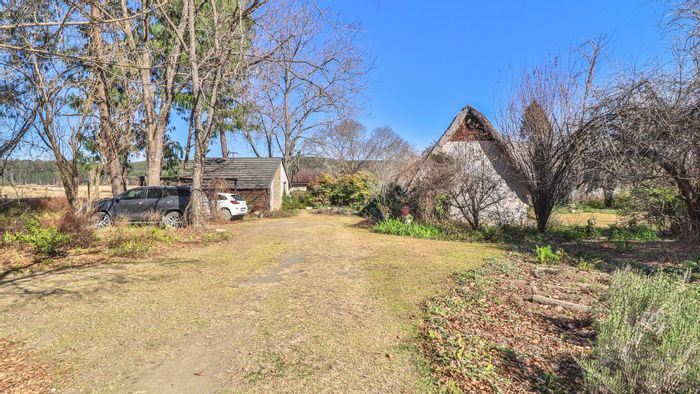 3-bedroom home with loft, 2 bathrooms, guest cottage, and 25ha land in Balgowan. Includes garage and ample parking.