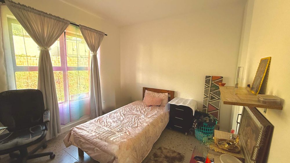 Inspired by Pietermaritzburg’s iconic redbrick architecture, the home features clean lines and a contemporary, minimalist aesthetic. The open-plan living area seamlessly integrates a sleek kitchen and lounge, complemented by tiled flooring for a fresh, low-maintenance finish. Glass sliding doors open onto a private, elevated balcony – ideal for morning coffee or unwinding in the evening.