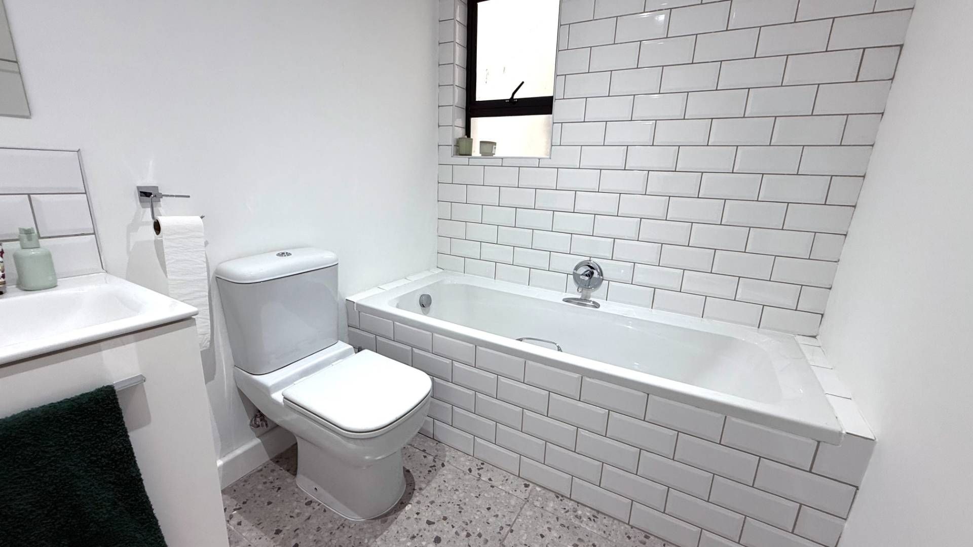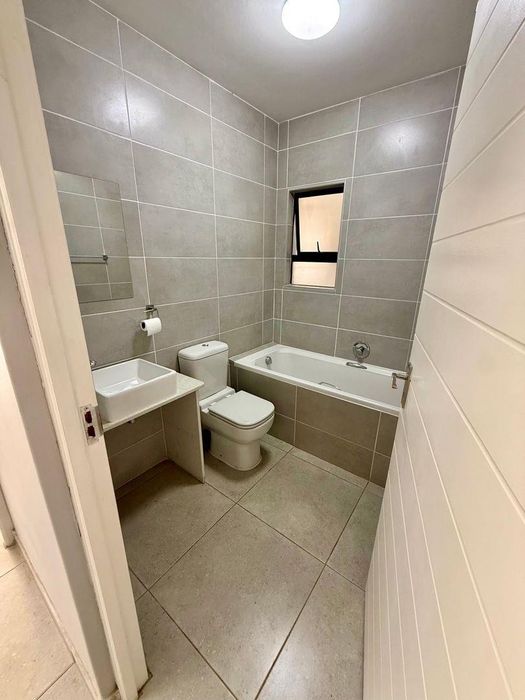 The main bedroom, which opens directly onto the balcony, includes generous cupboard space and a private en suite bathroom. The second bedroom is well-sized and located near a second bathroom complete with a bathtub, toilet, and basin for added convenience.