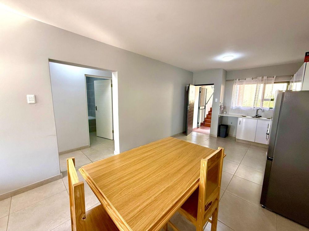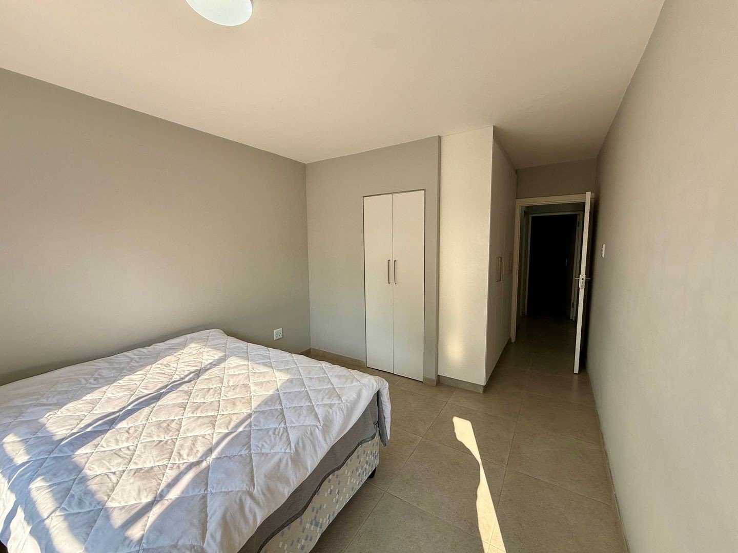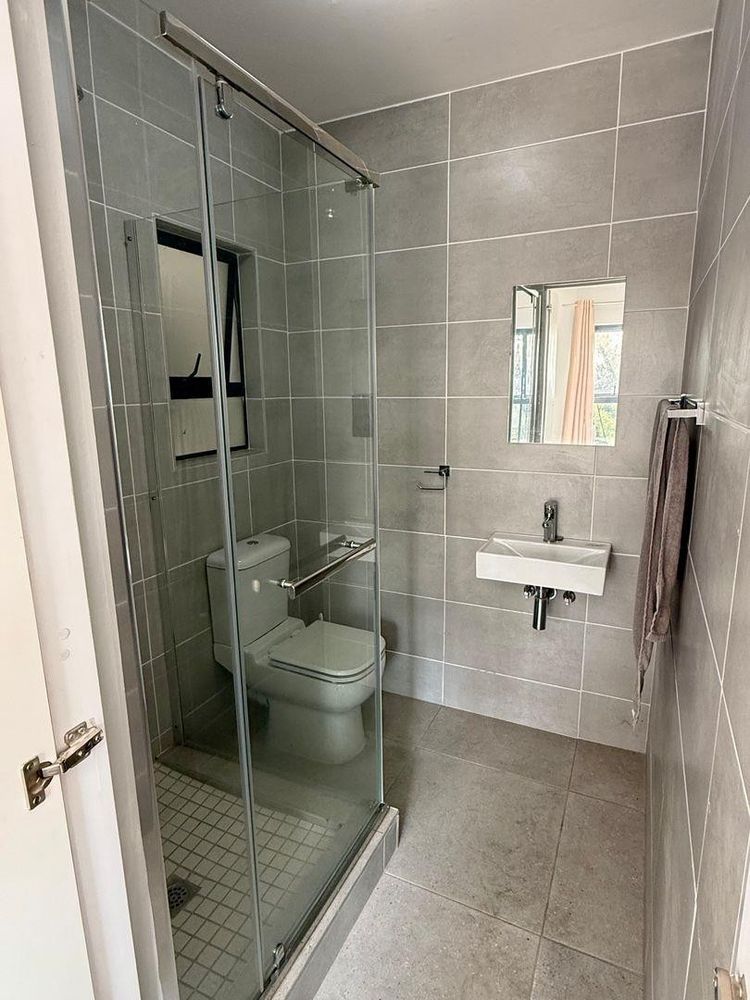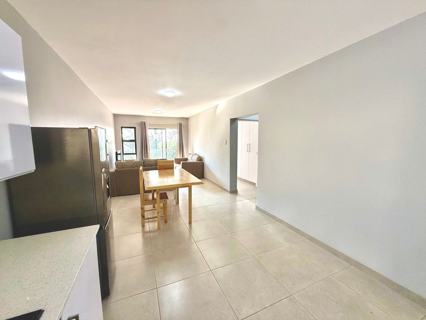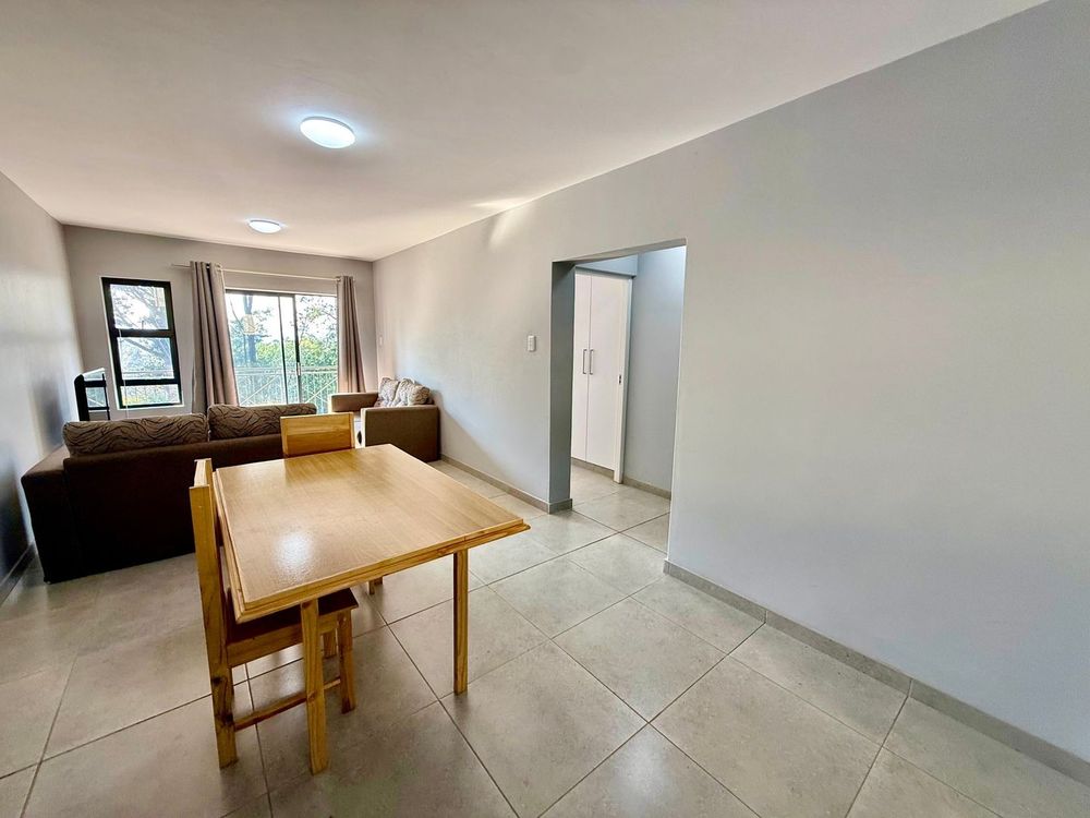 Inspired by Pietermaritzburg’s signature redbrick architecture, the apartment features clean lines and a minimalist aesthetic. The open-plan living area includes a sleek kitchen and a lounge, with tiled flooring throughout for a fresh and low-maintenance finish. Glass sliding doors lead to a private, elevated balcony, perfect for relaxed mornings or unwinding after work.