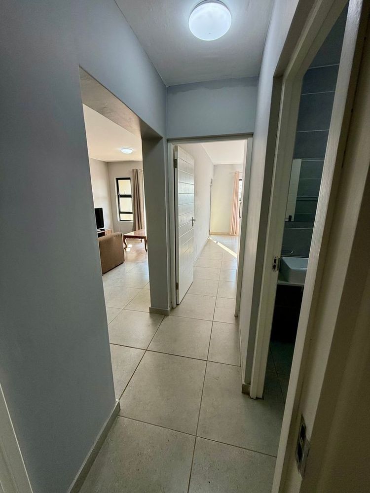 The Main bedroom leading out onto the balcony offers generous cupboard space and is serviced by a well-appointed En Suite bathroom. The second bedroom is spacious and functional. A second bathroom with bath, toilet and wash hand basin is located off the passageway for extra convenience.