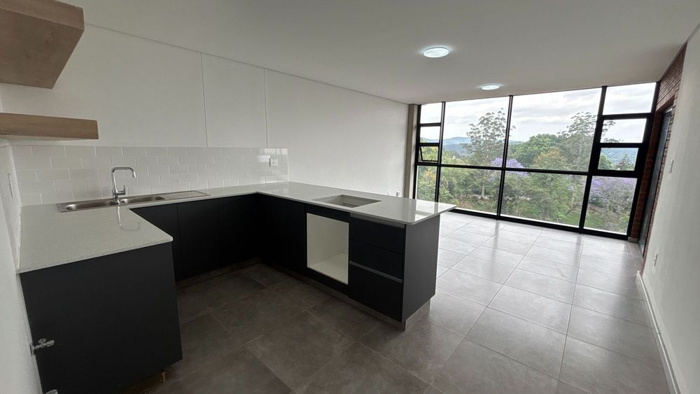 The two-bedroom, one-bathroom apartments at Arbour View offer a practical layout with modern finishes and secure living. Both bedrooms include built-in cupboards, and the open-plan kitchen and living area extends onto a balcony that brings in natural light.