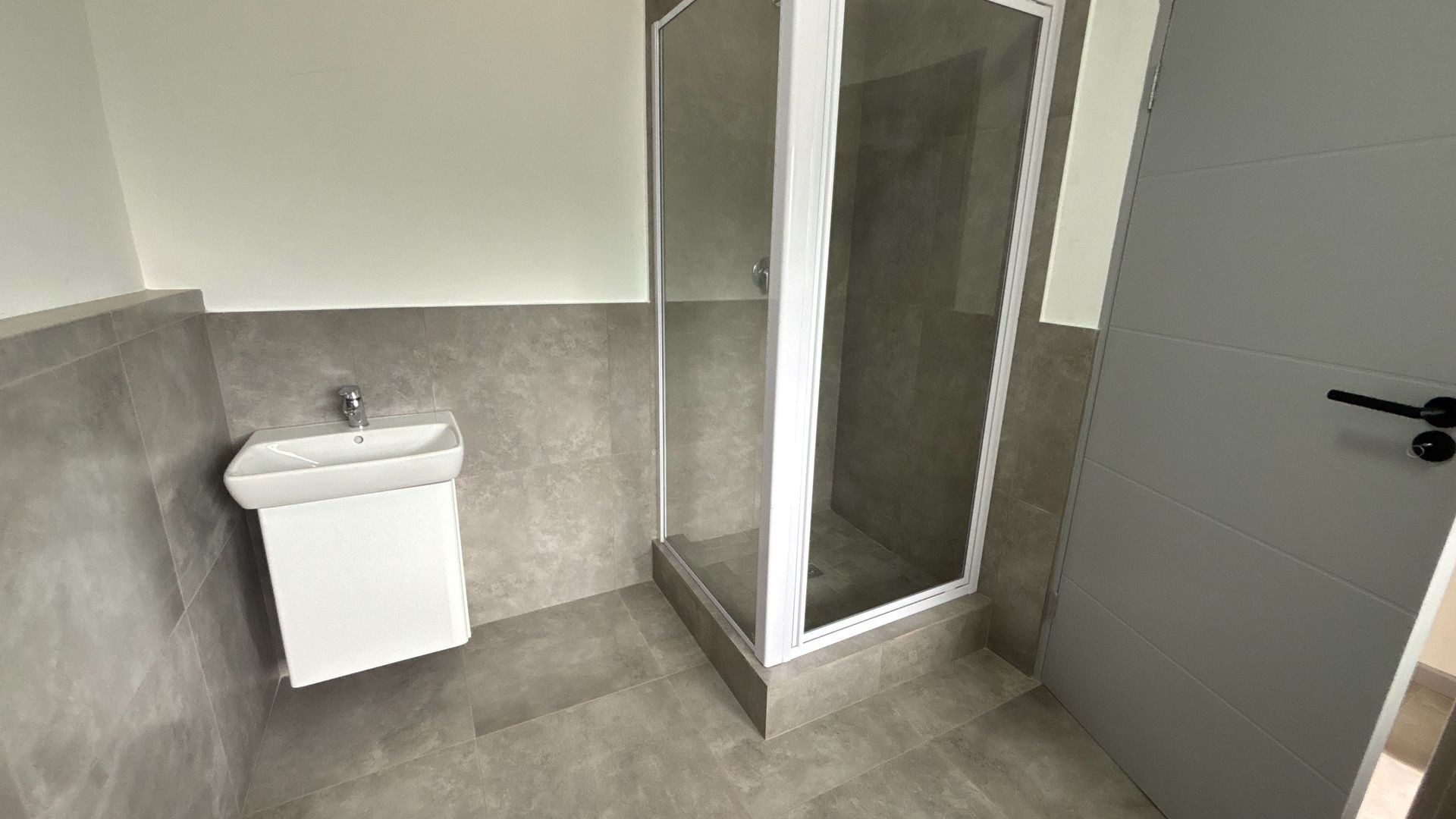 Interiors follow a modern grey and white theme, with tiled floors and exposed brick features in select units. Each apartment includes an oven and space for your own fridge and washing machine.