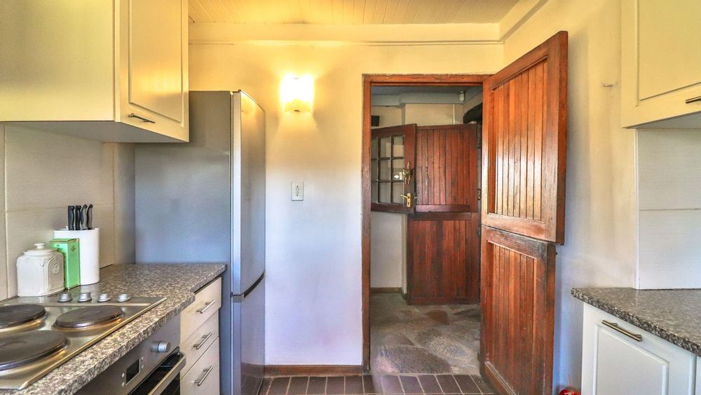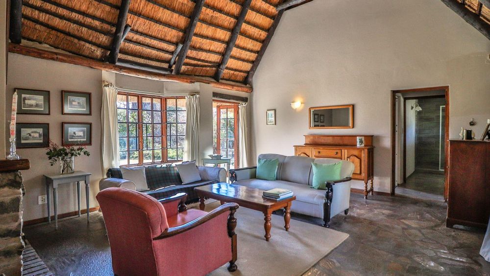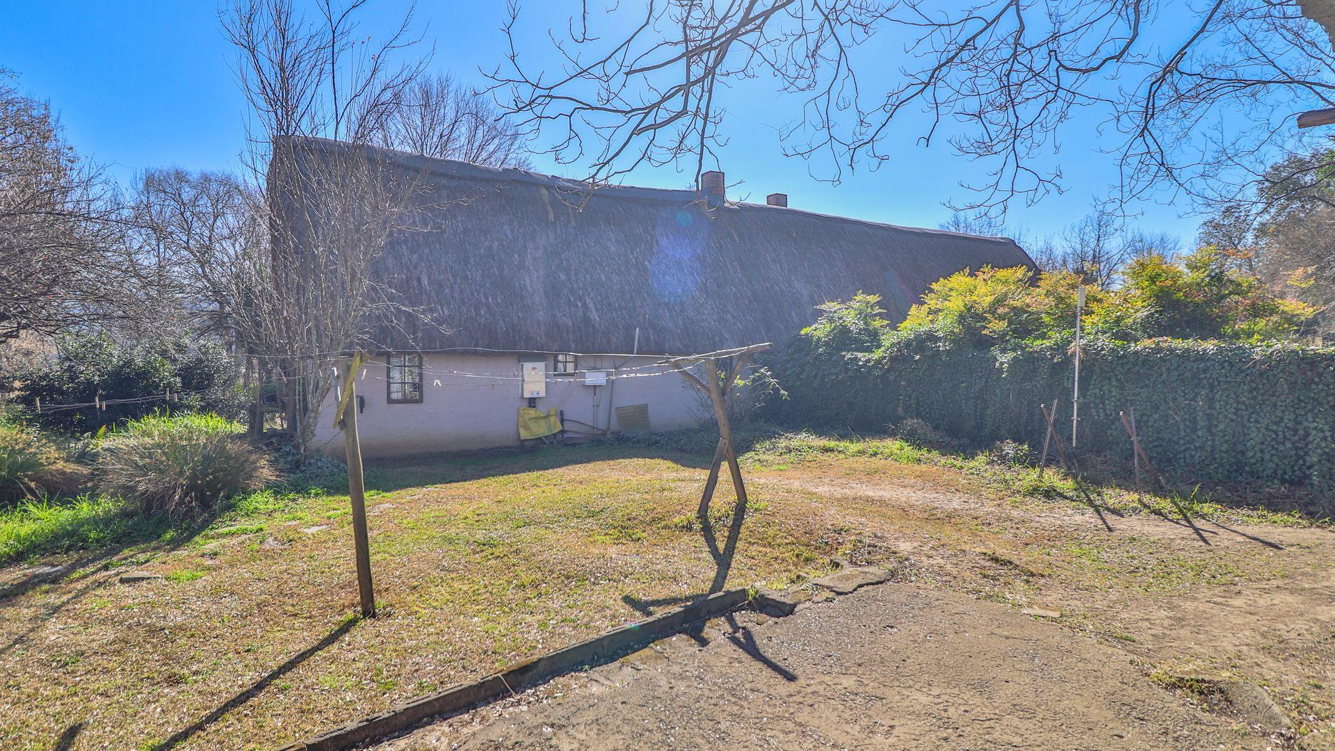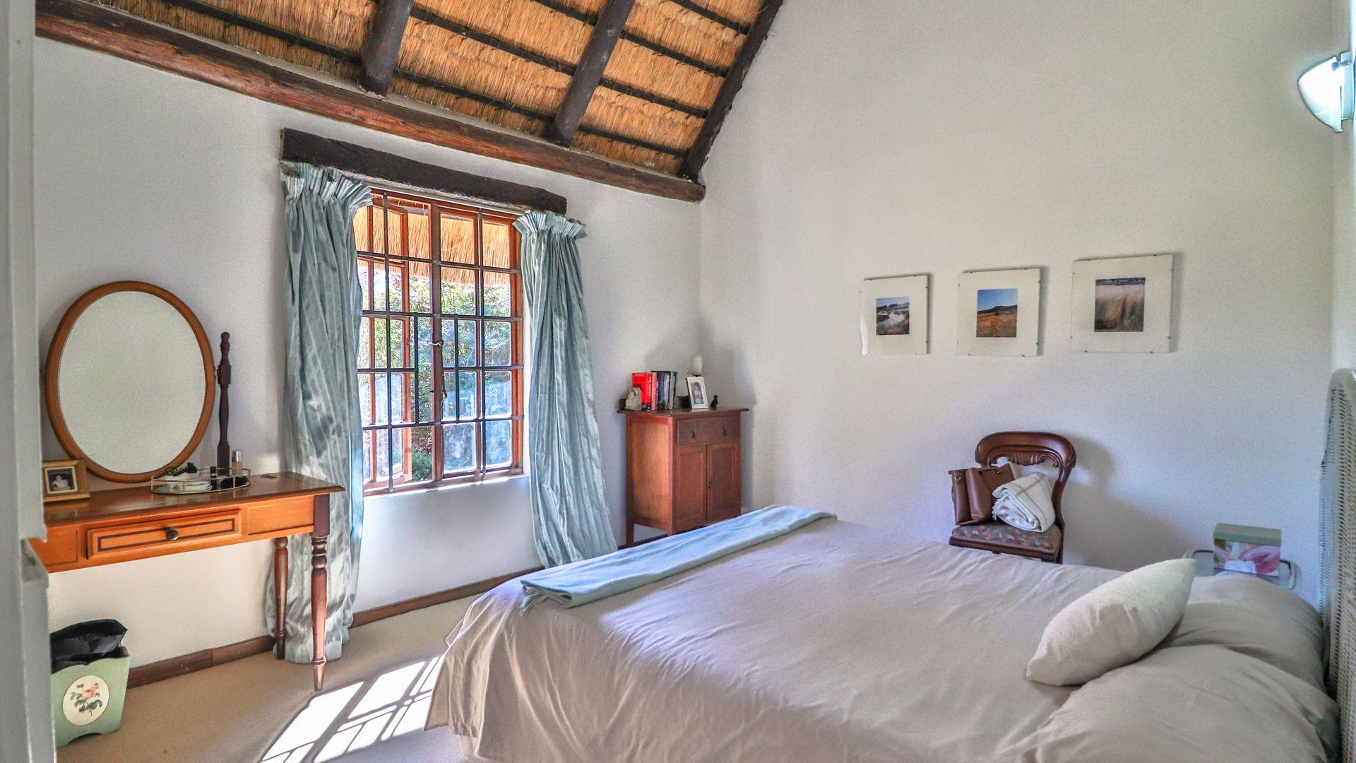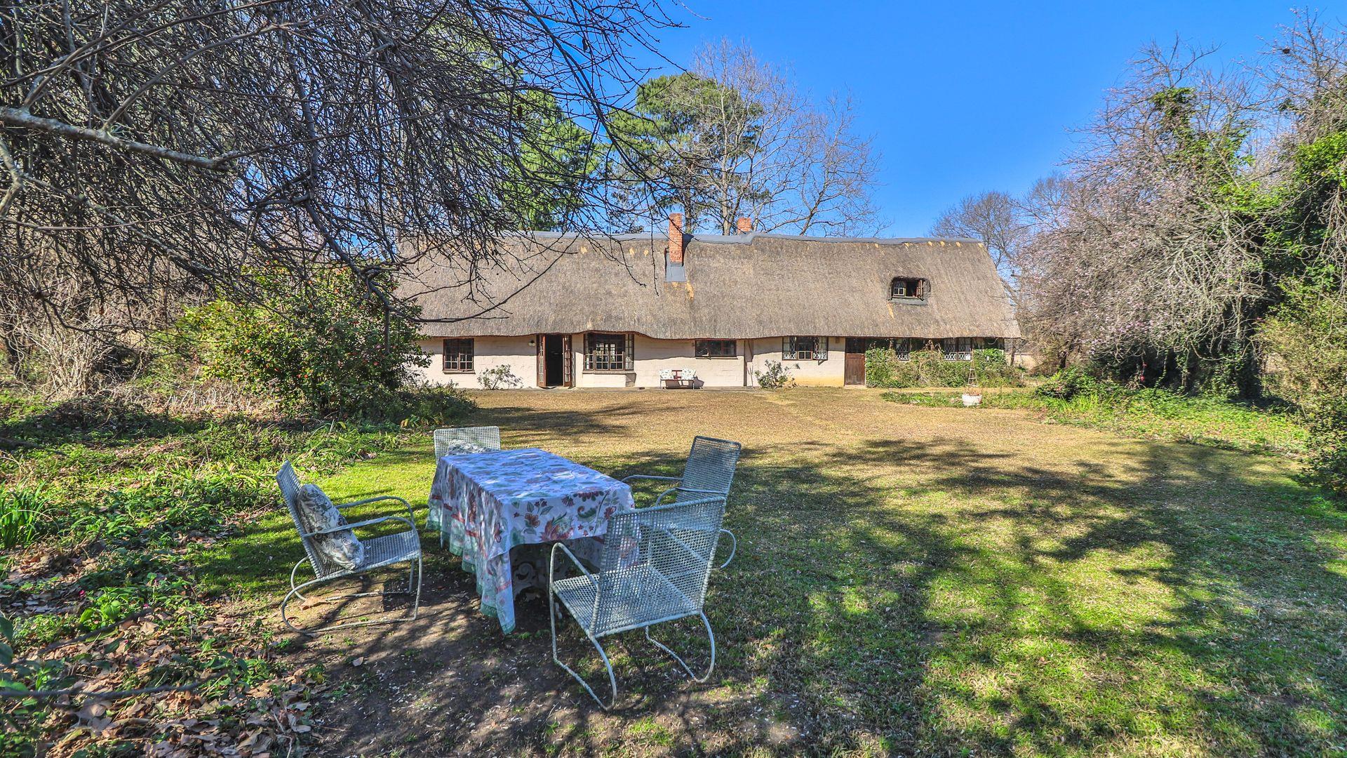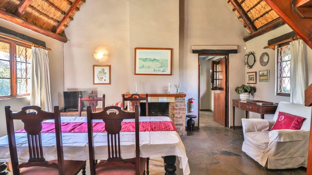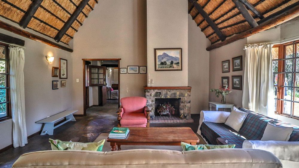 The charming thatch home radiates warmth and character from the moment you step inside. The inviting lounge, complete with a cosy fireplace, is the perfect retreat on chilly winter evenings, while the separate dining room with its own fireplace sets the scene for family meals or festive gatherings with friends. The quaint, functional kitchen adds to the home’s country charm, and a study offers a quiet nook for hobbies or working from home.