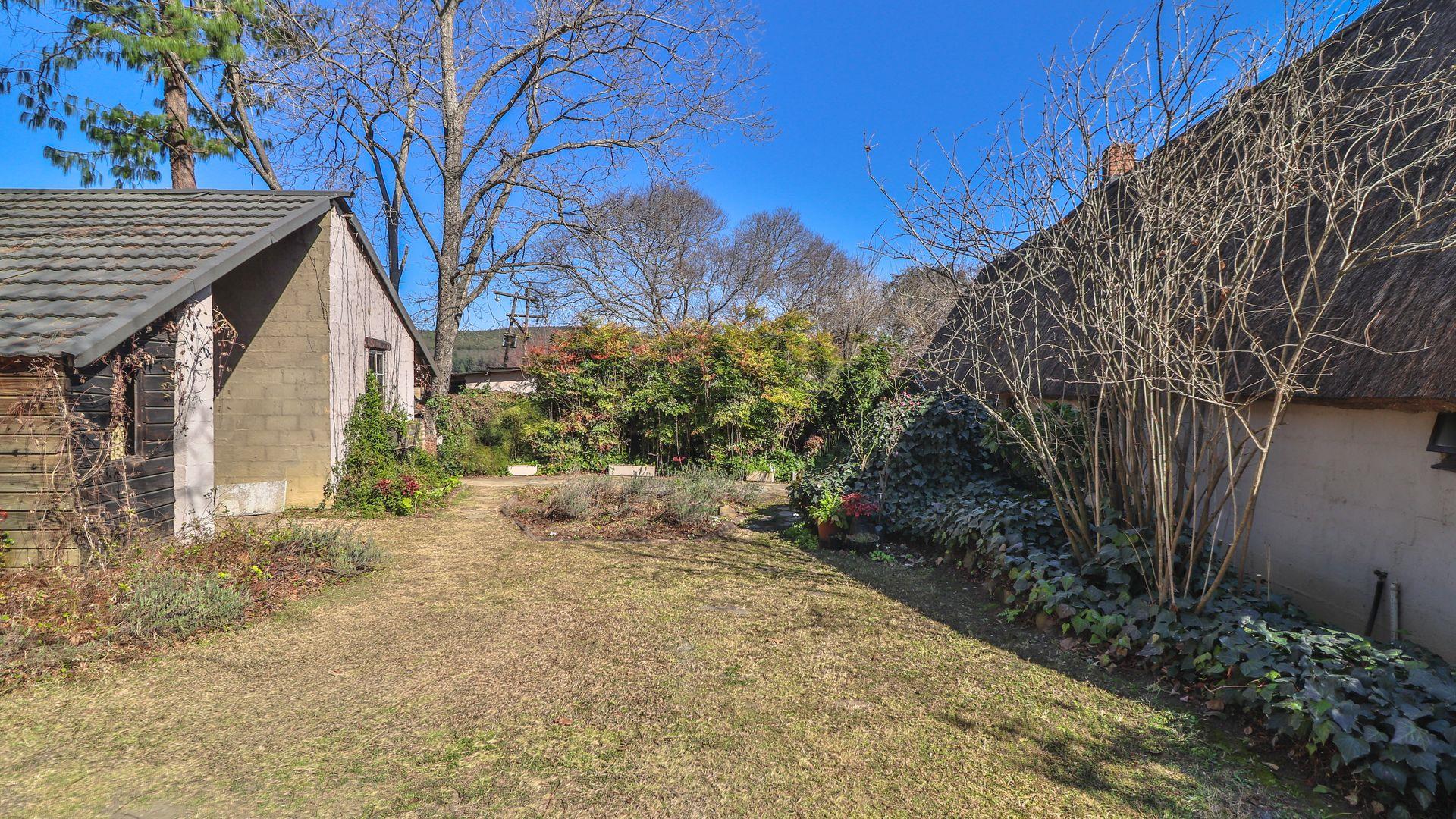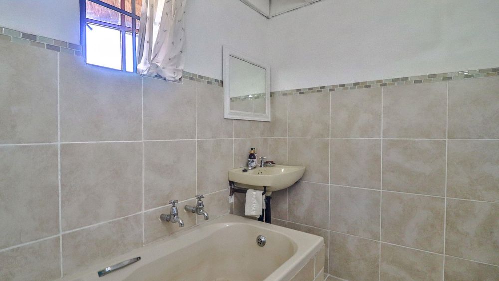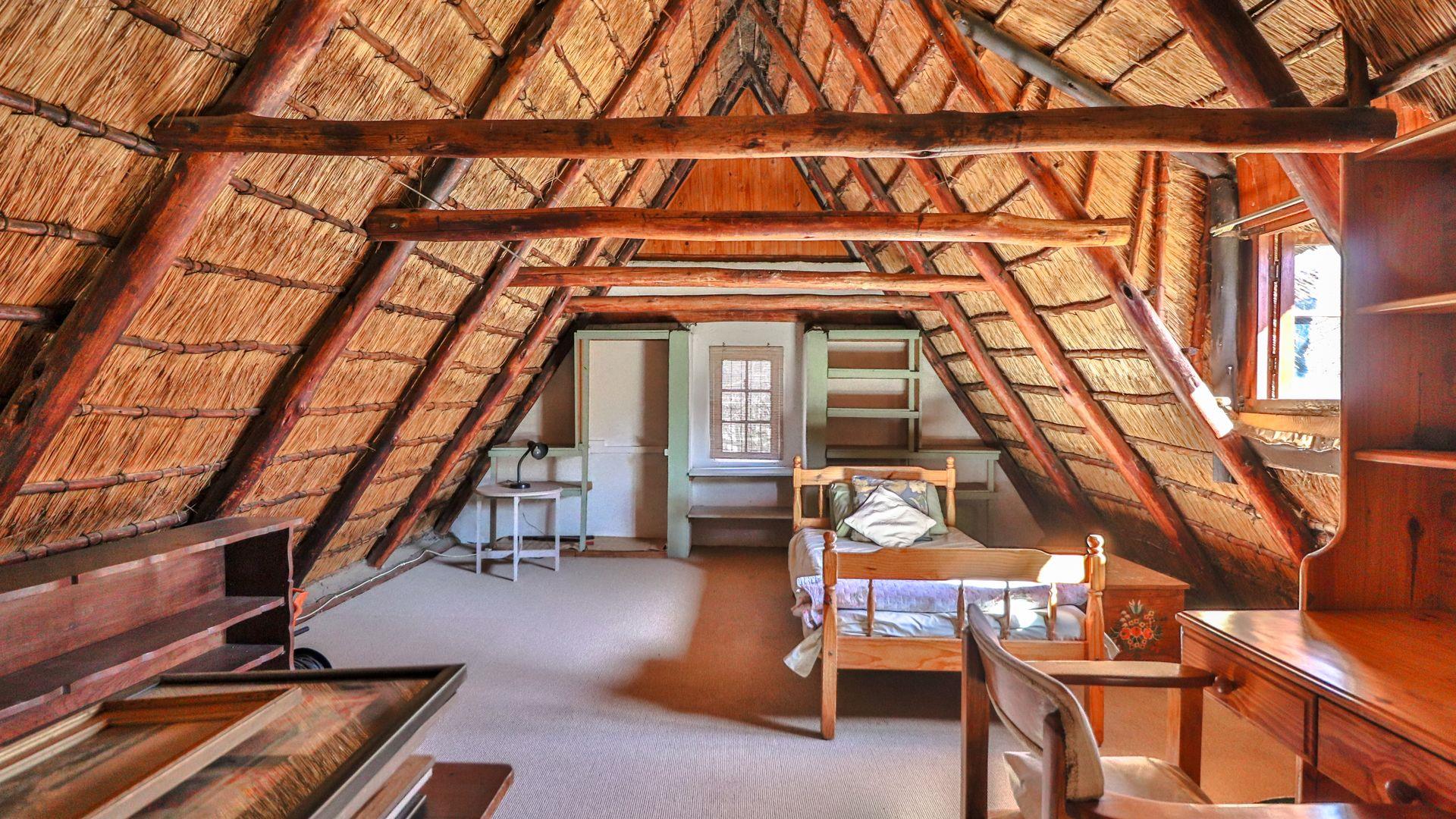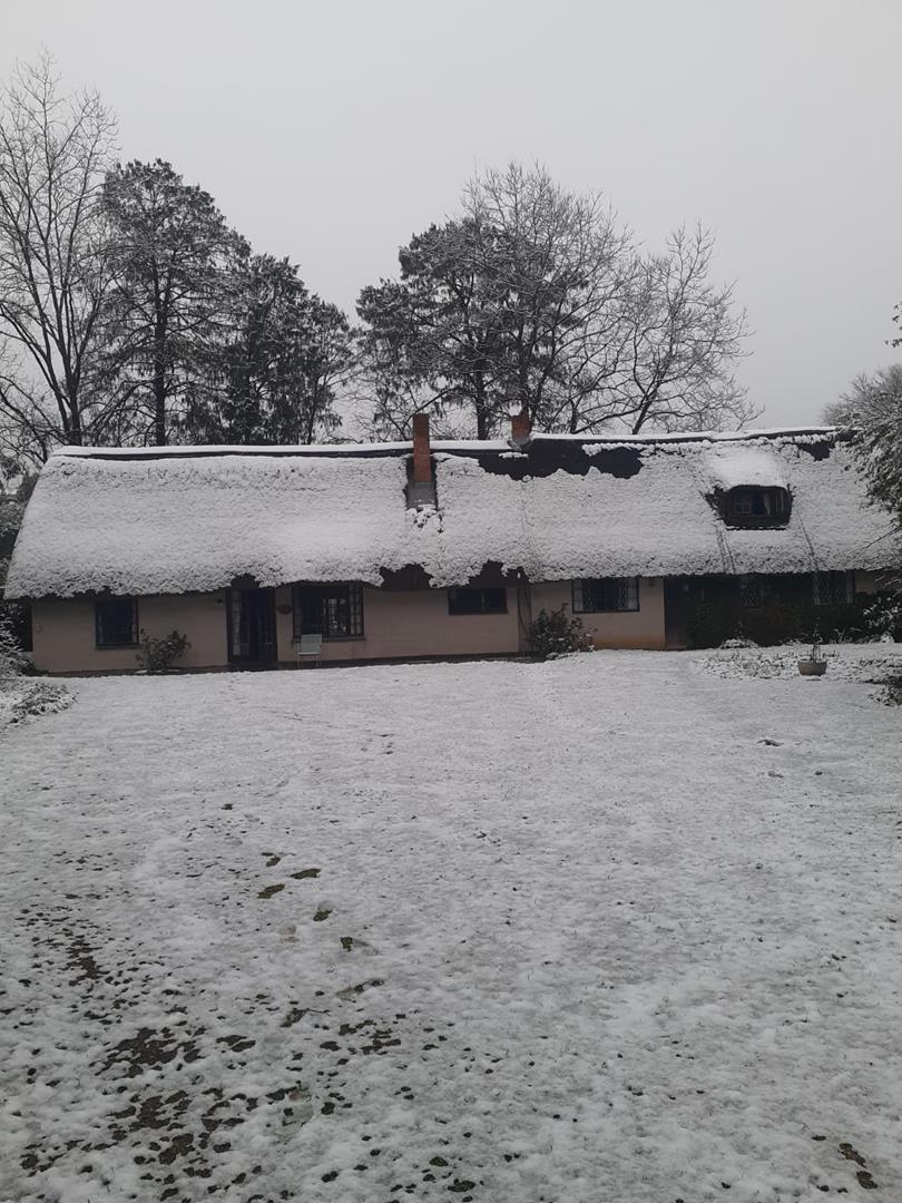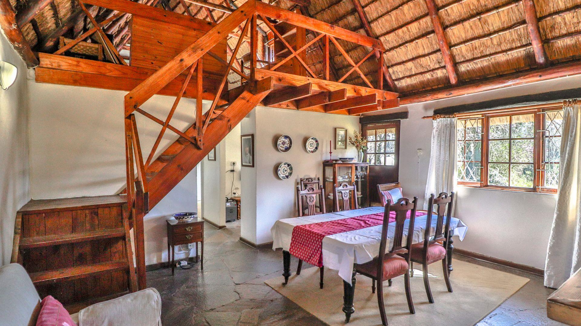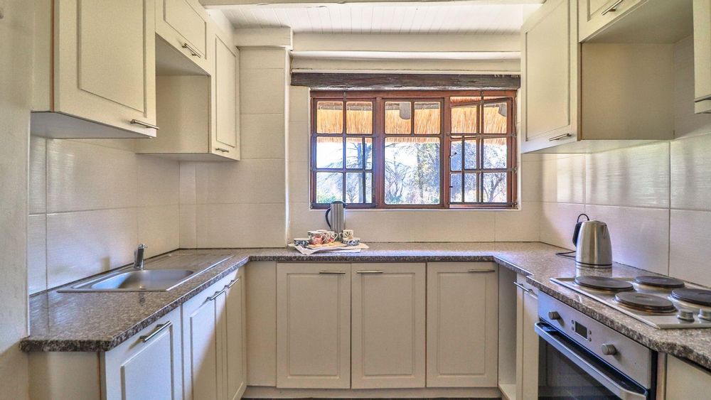 The charming thatch home radiates warmth and character from the moment you step inside. The inviting lounge, complete with a cosy fireplace, is the perfect retreat on chilly winter evenings, while the separate dining room with its own fireplace sets the scene for family meals or festive gatherings with friends. The quaint, functional kitchen adds to the home’s country charm, and a study offers a quiet nook for hobbies or working from home.