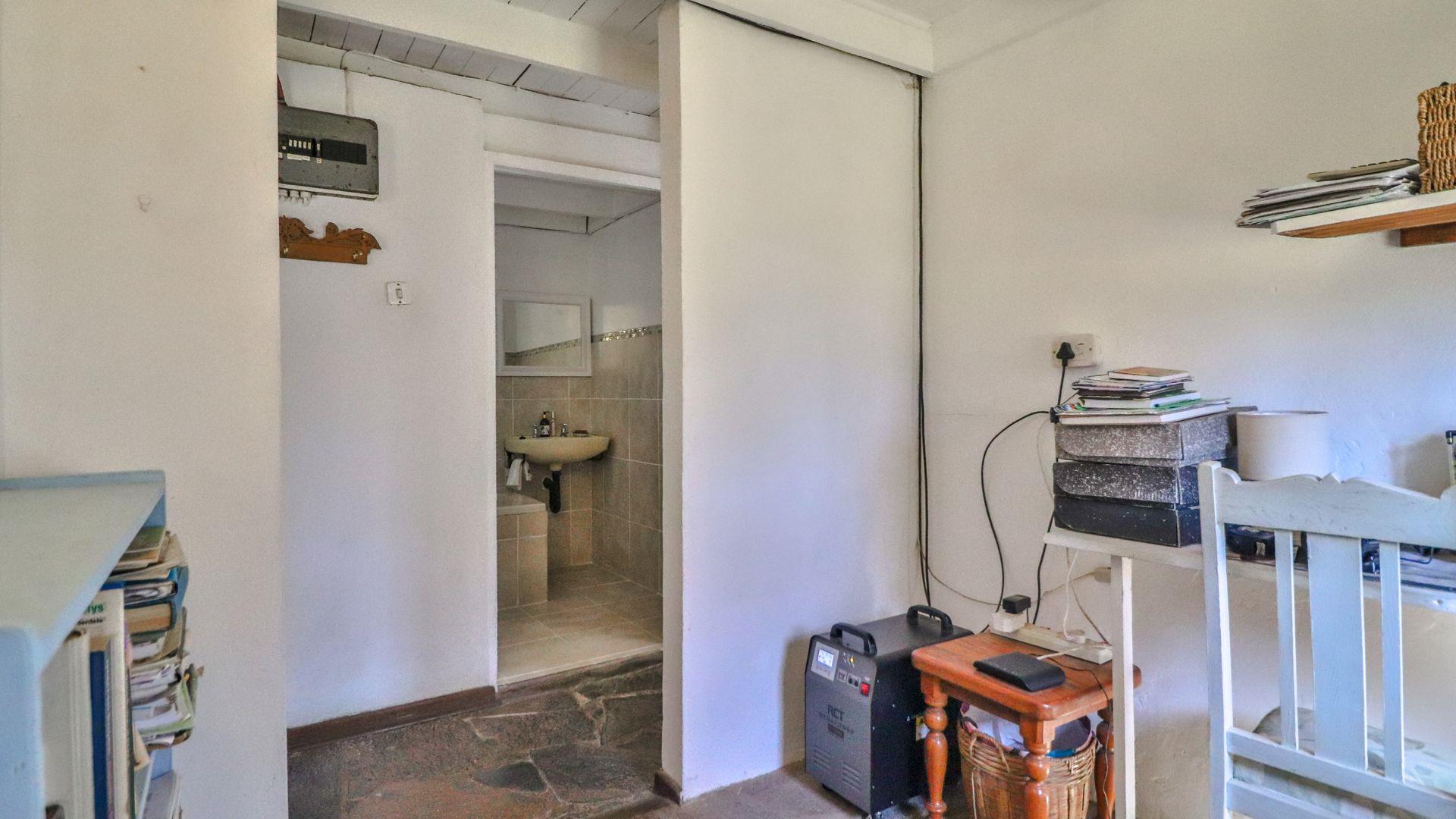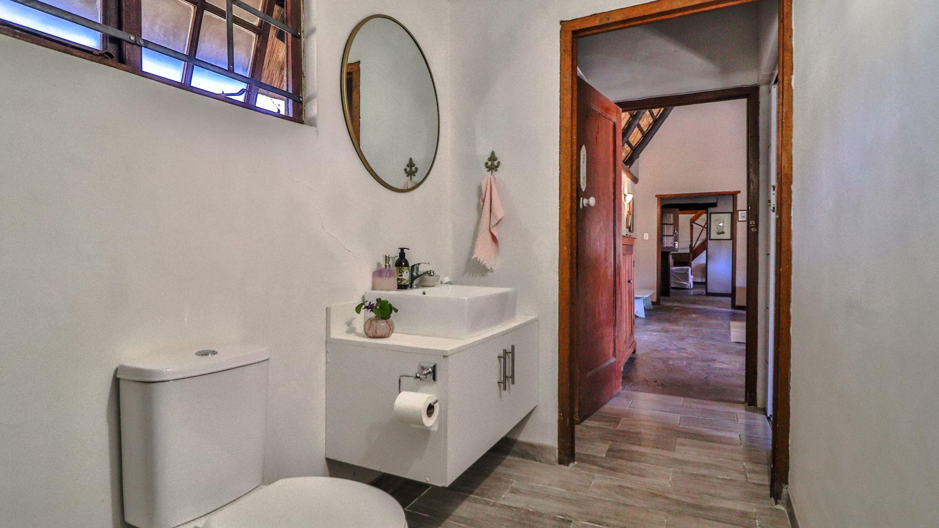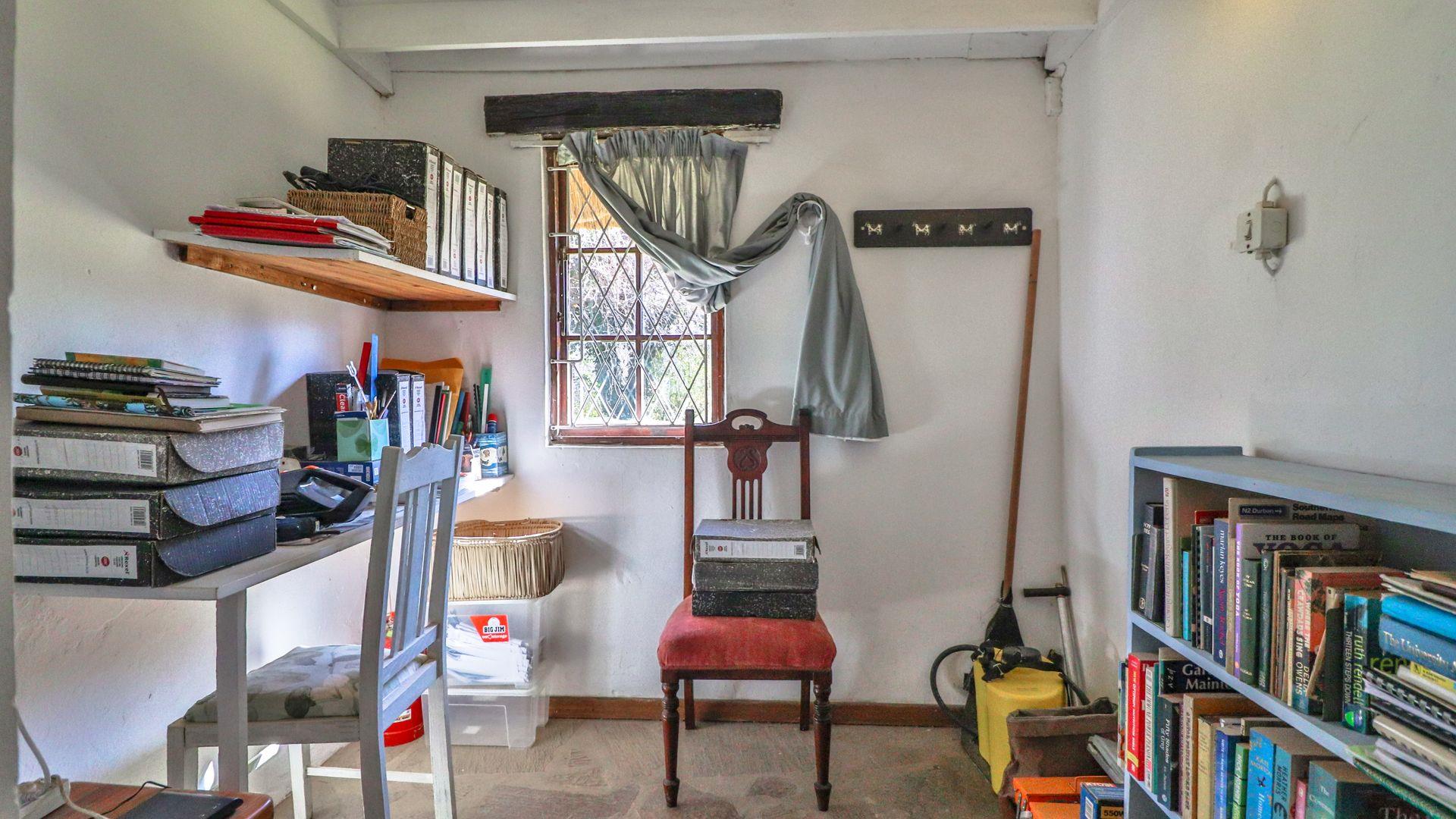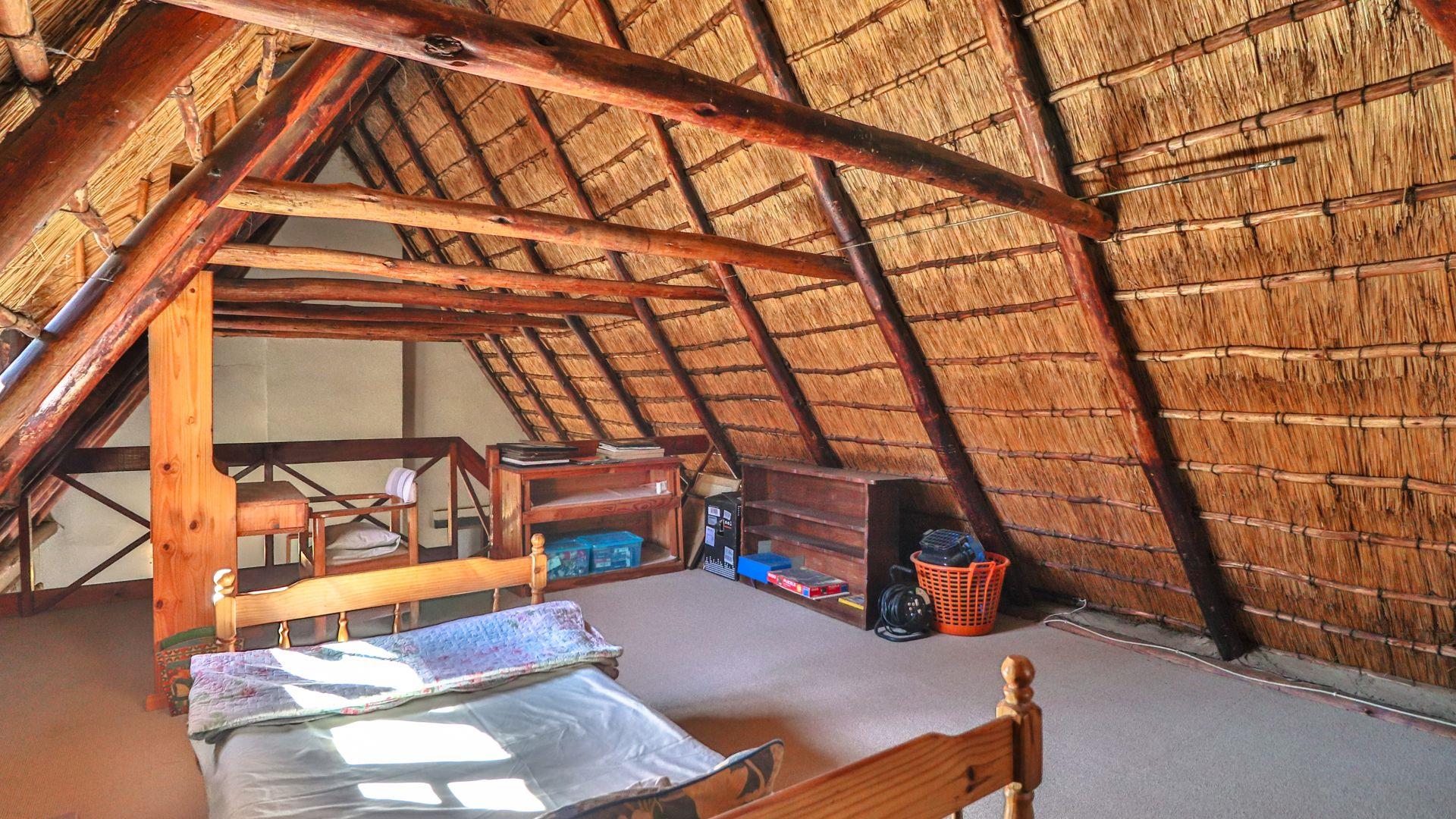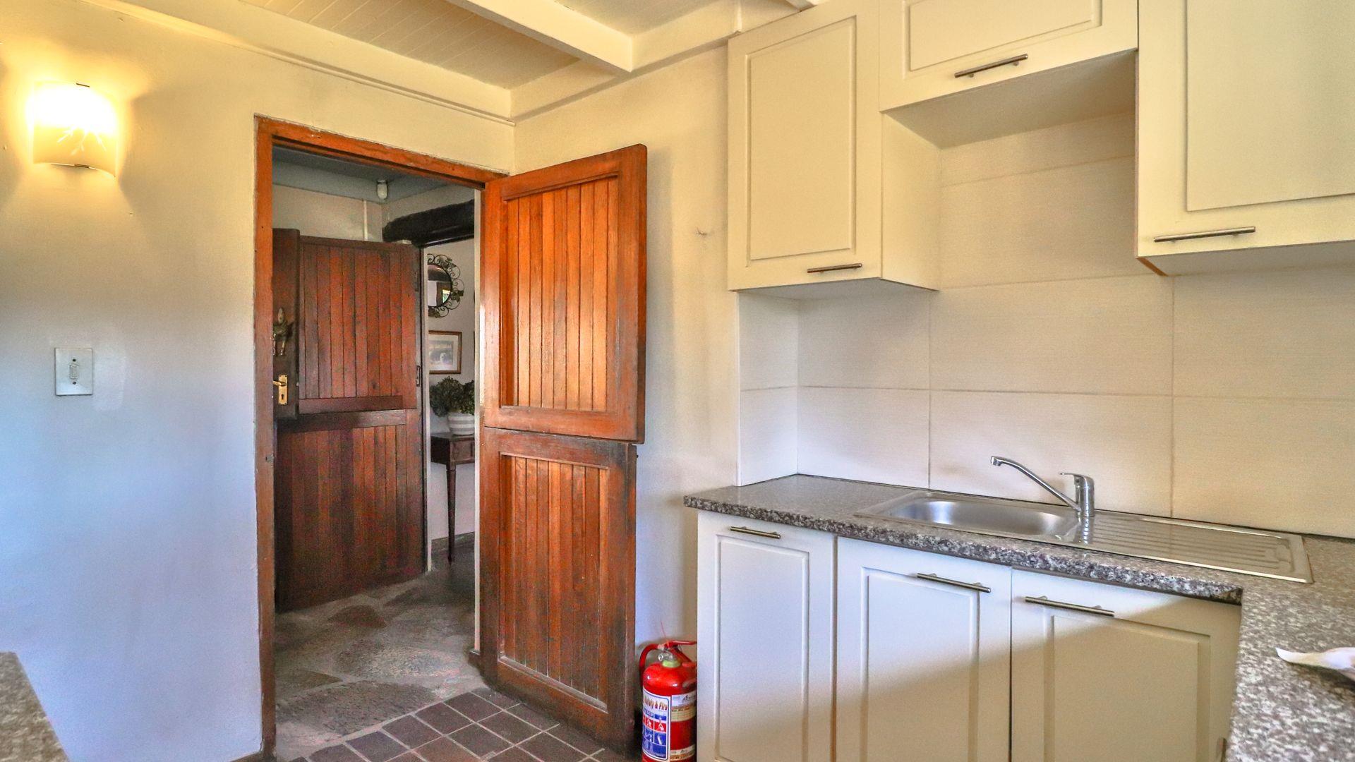 The charming thatch home radiates warmth and character from the moment you step inside. The inviting lounge, complete with a cosy fireplace, is the perfect retreat on chilly winter evenings, while the separate dining room with its own fireplace sets the scene for family meals or festive gatherings with friends. The quaint, functional kitchen adds to the home’s country charm, and a study offers a quiet nook for hobbies or working from home.