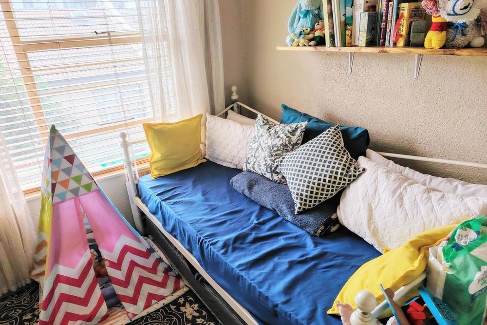 Neat corner unit is located in secure complex. It offers modern open plan kitchen, lounge & dining area – leading to a covered patio and wrap around garden. Lovely and extends the living & entertainment area.