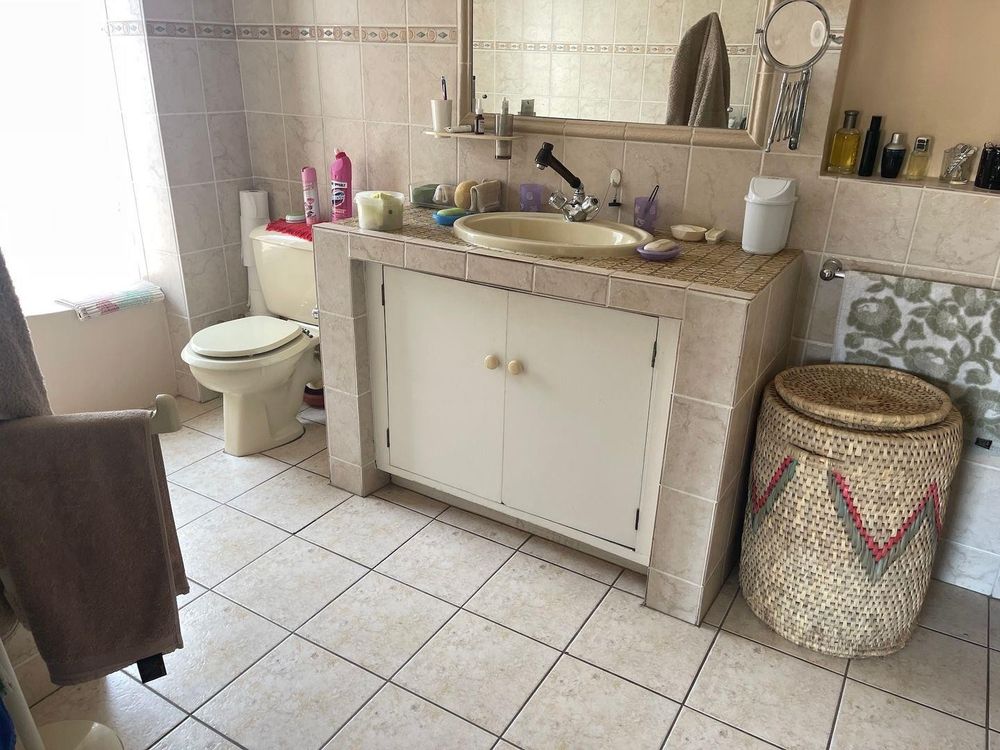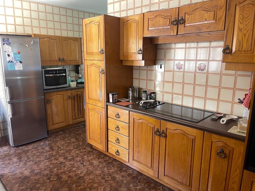 The property boasts a neat, tiled interior throughout, including a well-appointed kitchen that provides ample cupboard space for all your culinary needs. The kitchen flows seamlessly into a paved courtyard, creating an ideal space for outdoor entertaining or relaxation.