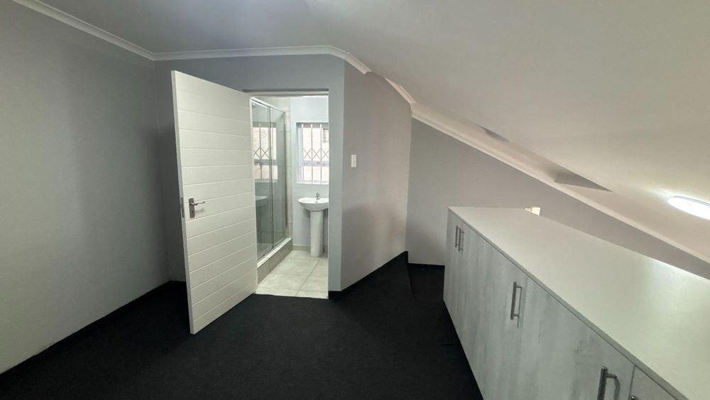 This unique one-bedroom flat with a split loft room is available for rent in the secure Forest Waters Lifestyle Estate, Chase Valley. Located in Pietermaritzburg, this modern unit offers a versatile multi-level layout and scenic views.