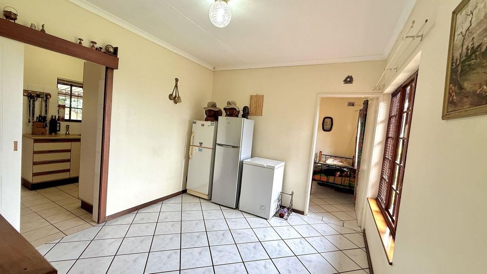 Inside, the main house is filled with natural light and offers multiple living spaces, including two lounges, a dining room, and a separate study, all providing flexibility for family living or working from home. The kitchen includes a separate scullery and laundry, ample built-in cupboards, and generous countertops, ensuring both practicality and comfort.