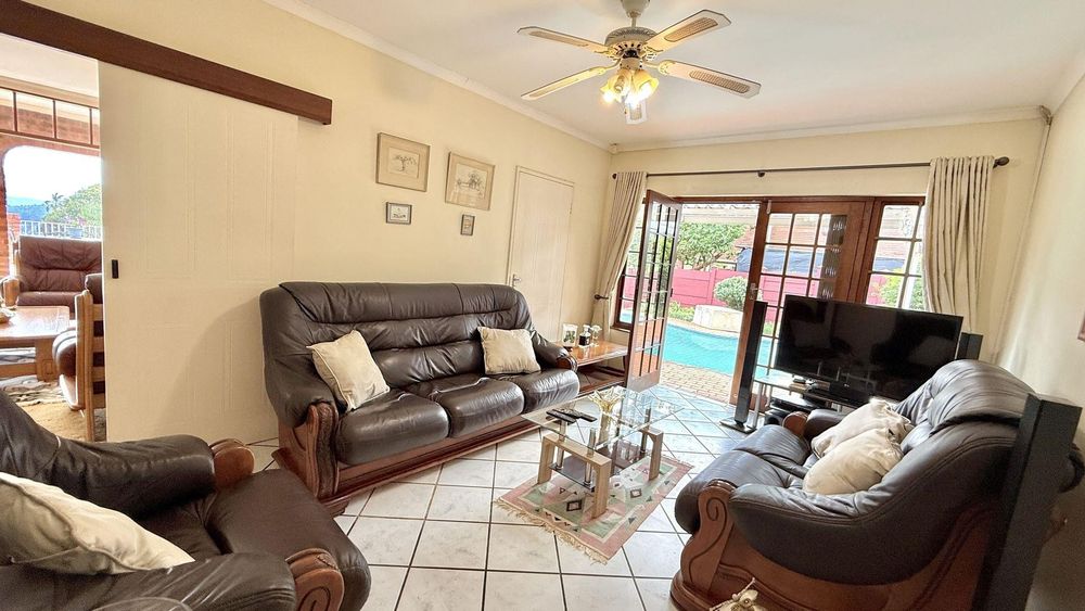 Set high atop Muswell Hill in a quiet, scenic neighbourhood, this well-established face-brick family home offers space, privacy, and panoramic views over Pietermaritzburg. Positioned within a large, beautifully maintained garden, the home features a spacious balcony, a covered patio, and an outdoor braai area with an adjustable louvered Chromadek roof for perfect light control, ideal for year-round entertaining. The patio flows seamlessly out to the swimming pool, creating an inviting outdoor living environment.
