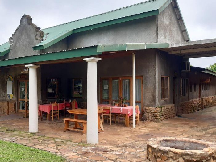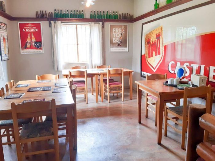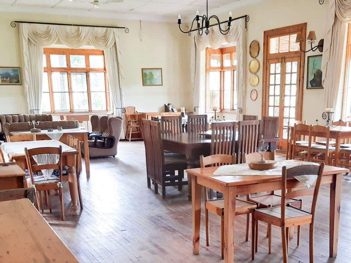 Historic hotel with 15 rooms, bar, restaurant, function room, and additional rental properties on expansive land. Priced at R4,999,000.