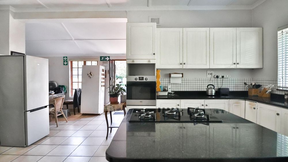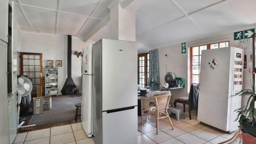 The heart of the home is a warm and inviting country-style kitchen, complete with a gas hob and built-in oven. Two spacious lounges offer versatile living: a cozy TV room with a fireplace just off the kitchen, and a more formal lounge ideal for elegant gatherings. The stately dining room flows seamlessly from the kitchen, making entertaining effortless and enjoyable.