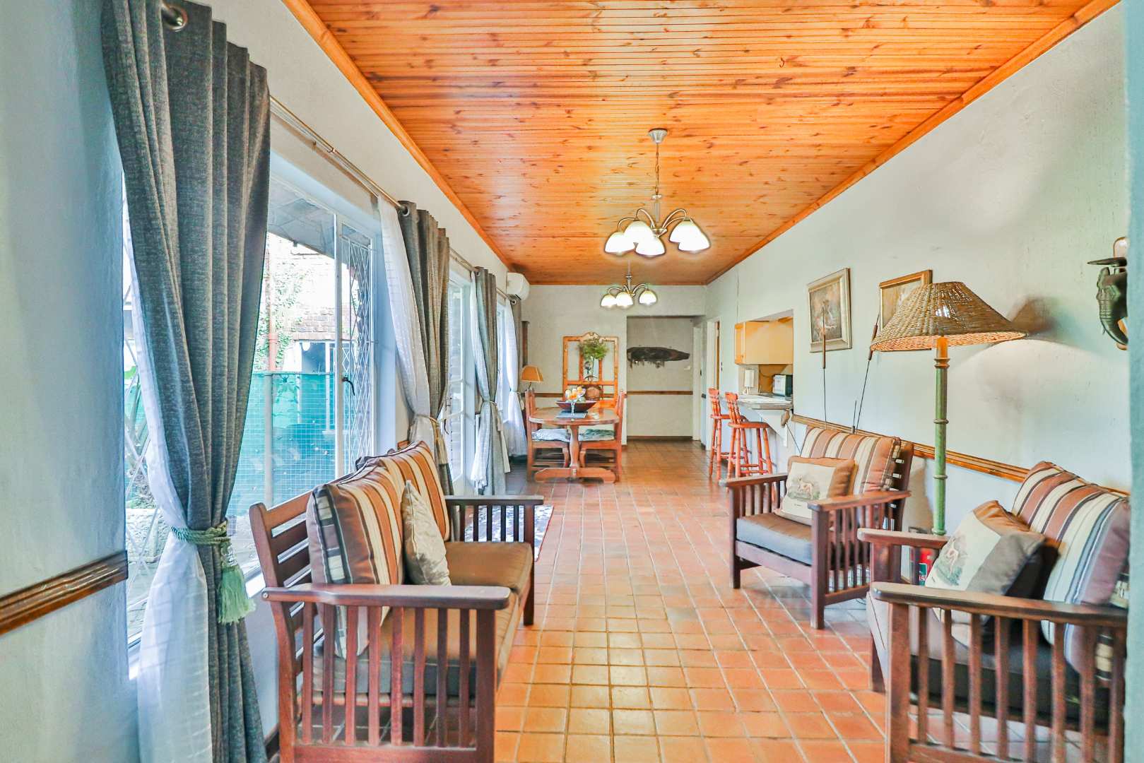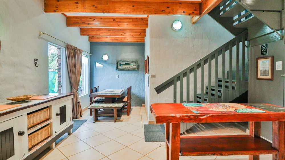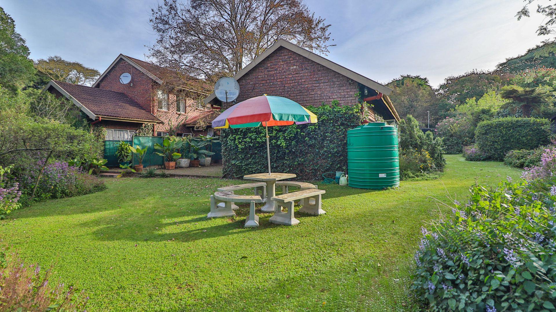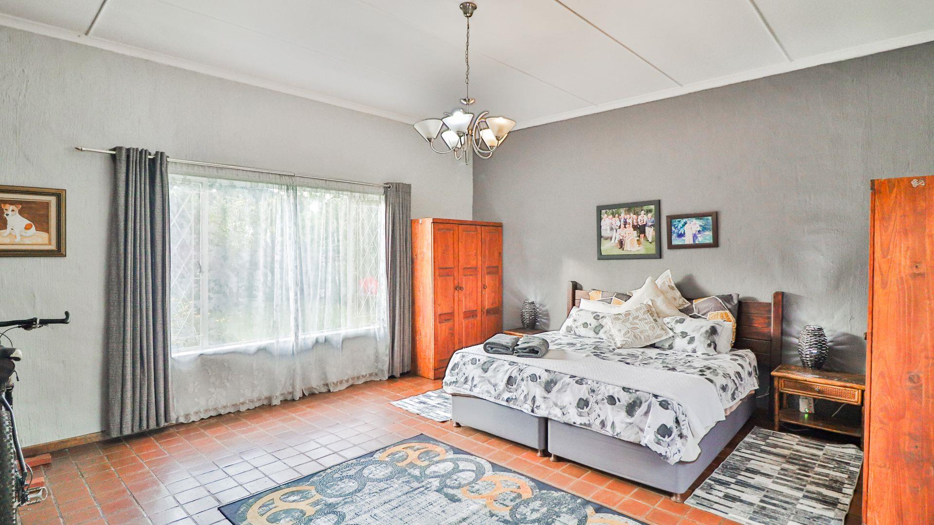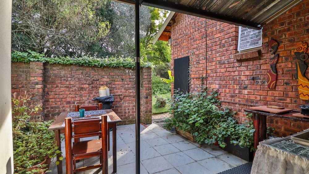 The garden is not just beautiful but functional too, with JoJo tanks on a pressure pump system for water savings, a brand-new boma and braai area for relaxed gatherings, and a prepaid electricity system in place. Security includes an alarm, external beams, and eight surveillance cameras for peace of mind.