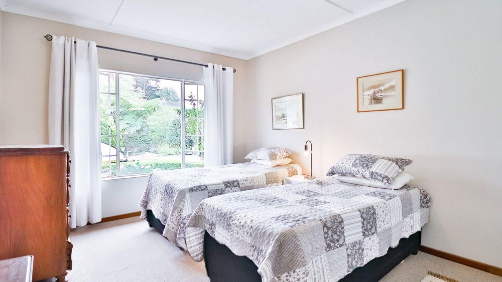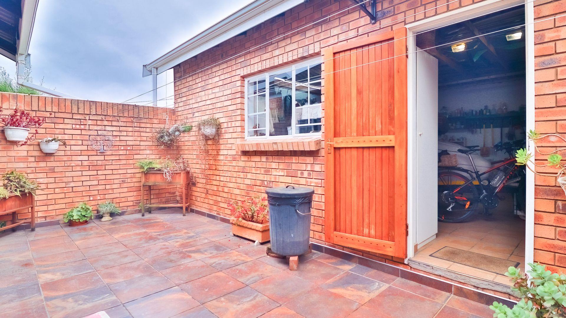 At the side of the garage, a private two-tier garden walkway leads you past a metal storage shed. A plumbed water tank is around the back. Eco-friendly and efficient extras include a solar geyser, prepaid electricity, plus a generator (wired to the DB board and available by negotiation).