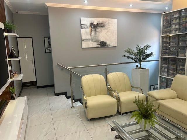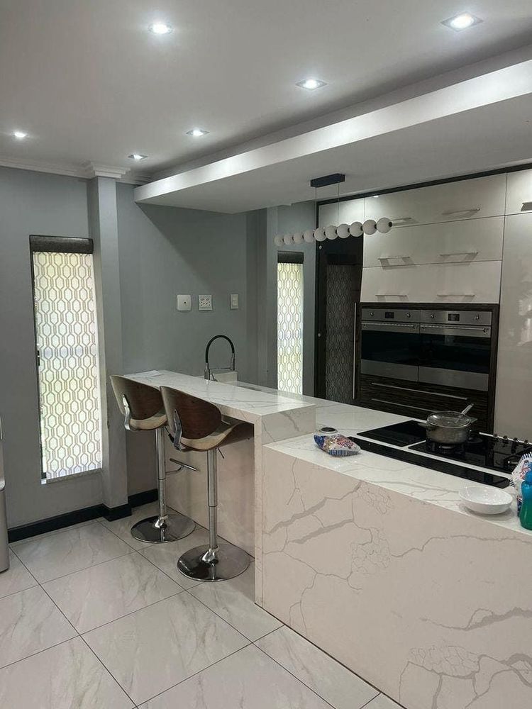 This contemporary 5-bedroom, 4-bathroom home offers stylish, secure estate living in the heart of Greenstone Hill. Featuring open-plan living and dining areas, two lounges, and a sleek modern kitchen with granite countertops and a central island.