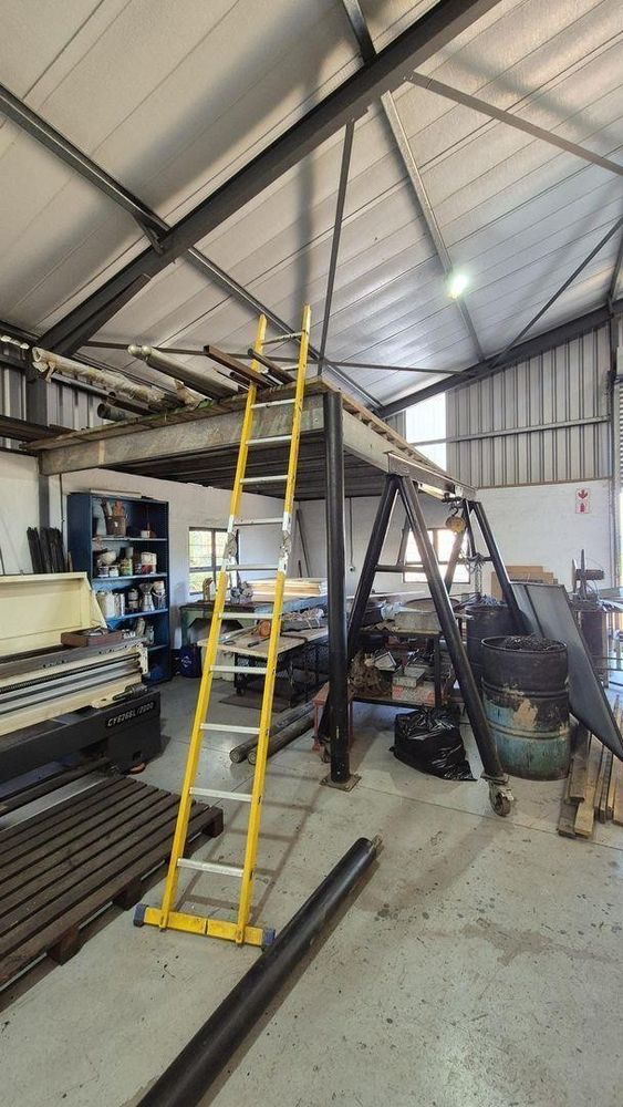 The original building consists of two sections totaling 403m2 with an extension of 250m2 provides an impressive 657m2 sized workshop. A large roll up door gives road access directly into the workshop extension. Entrance into the property is through a suspended 5m wide palisade gate which will allowing truck access up to 10 tons. These buildings offer: