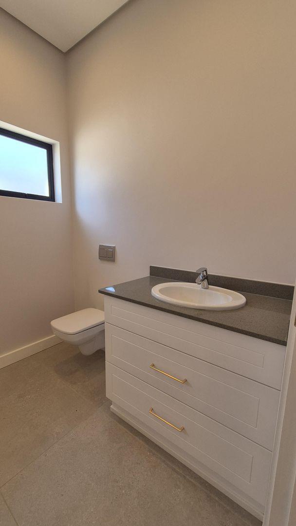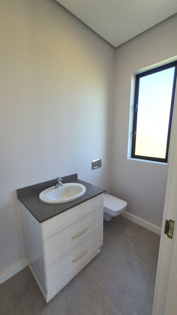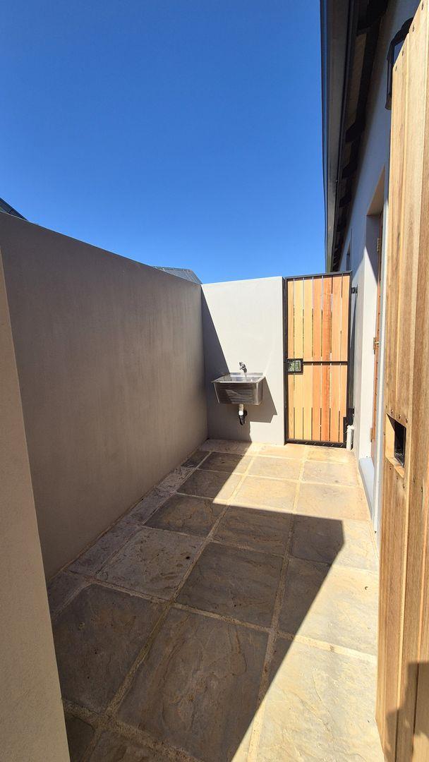 Completing this impeccable residence is a double automated garage with a screeded floor and built-in cupboards, providing convenience and storage solutions for modern living. Through the side door is a walled courtyard with a basin.