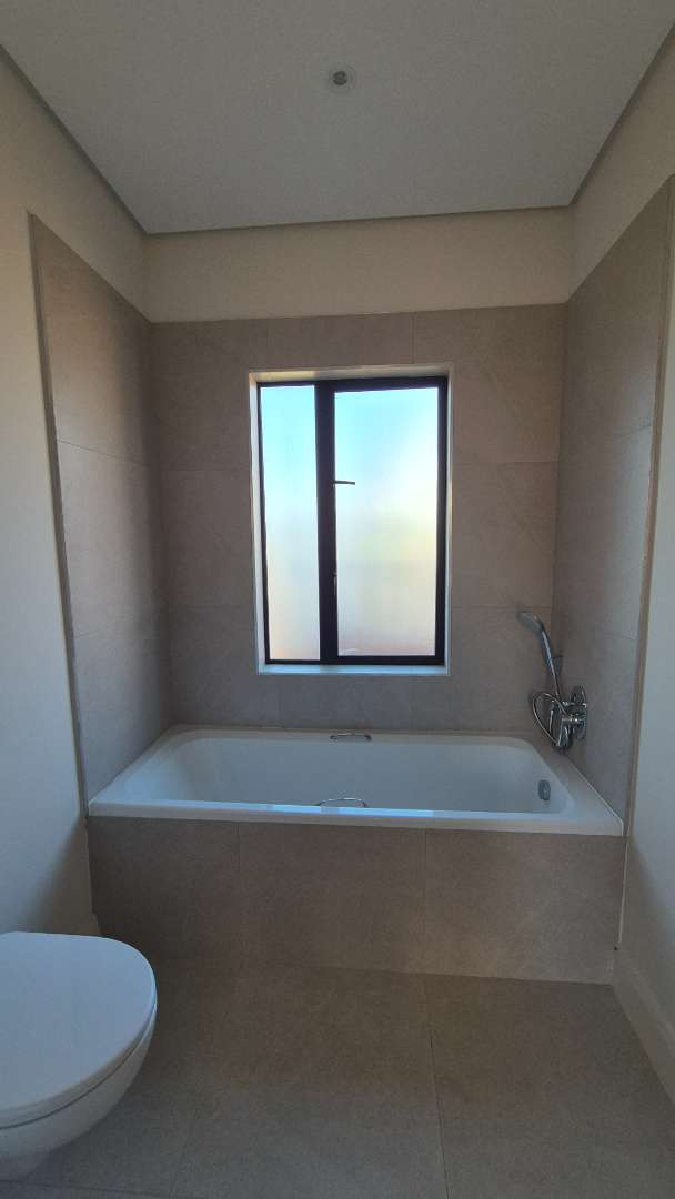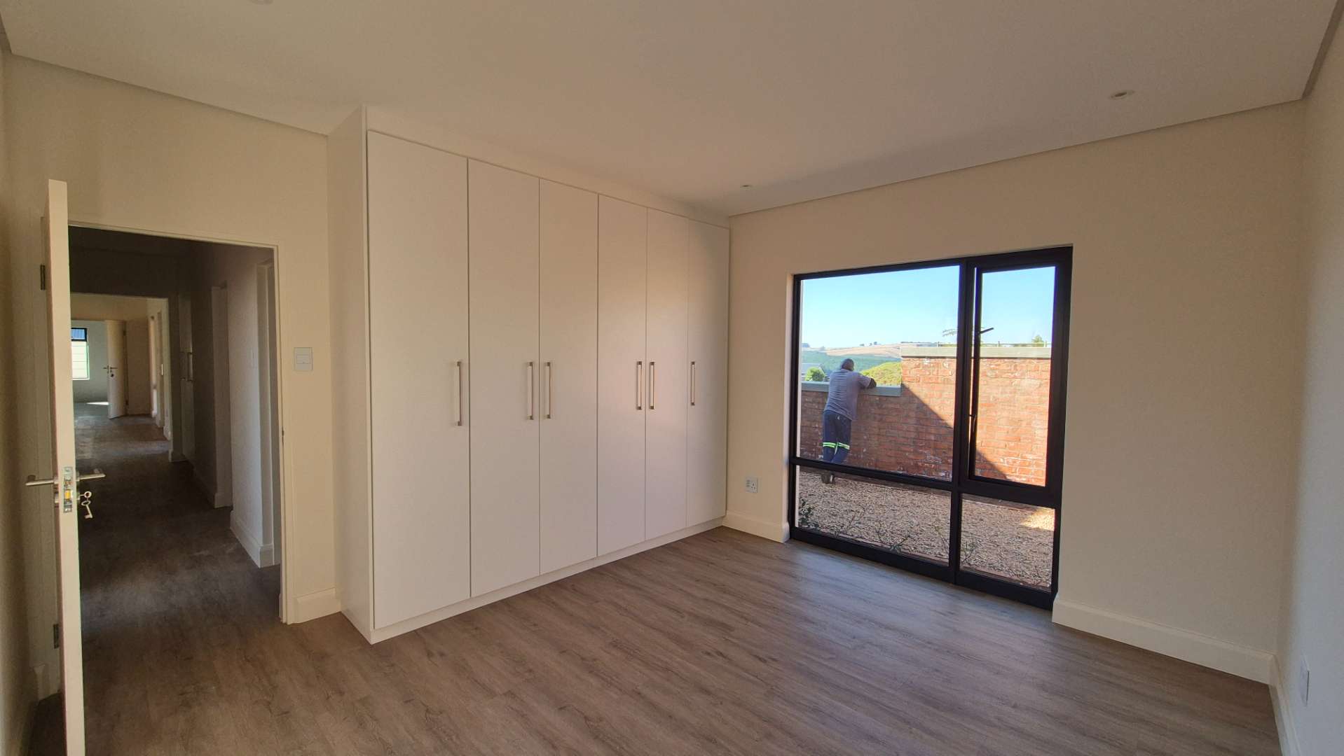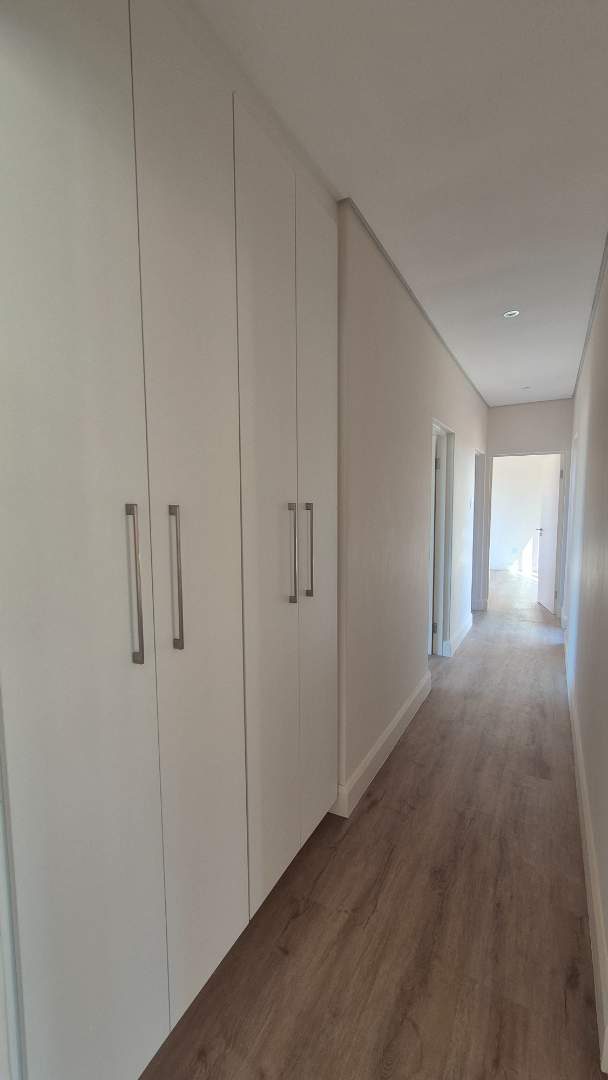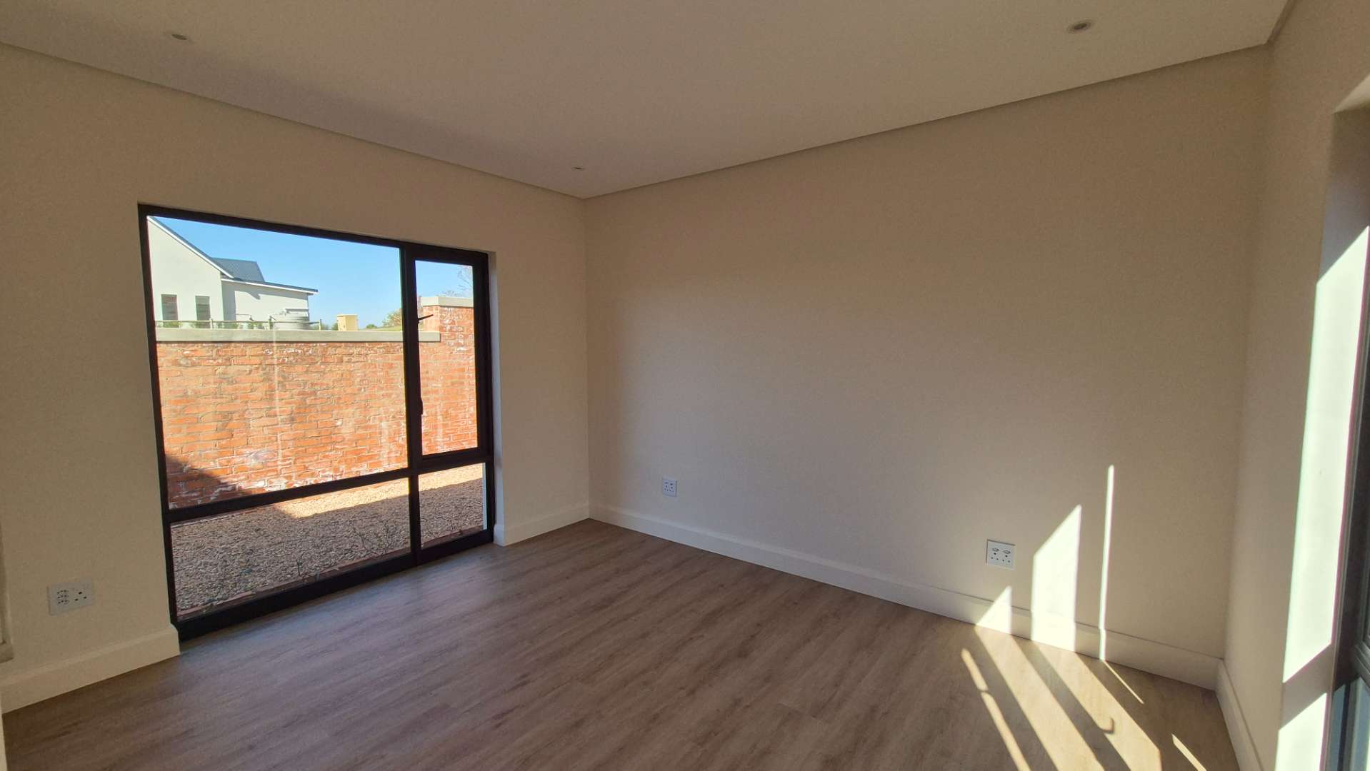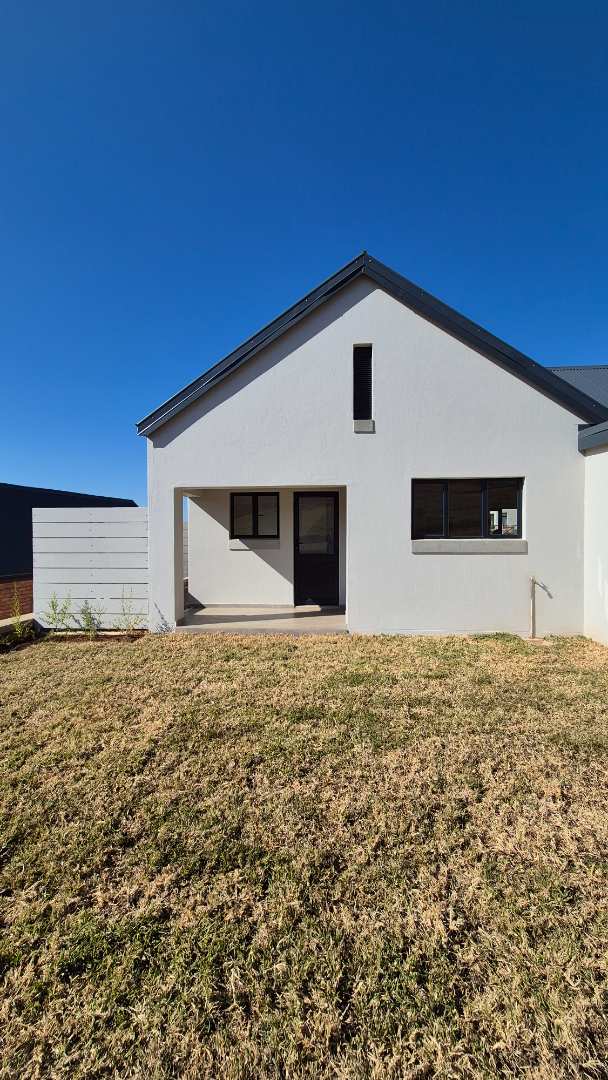 The lounge boasts extra-high ceilings with exposed beams and opens out through large sliding doors to a generous semi-enclosed patio with a built-in braai – ideal for year-round entertaining. The landscaped garden is newly established and easy to maintain.