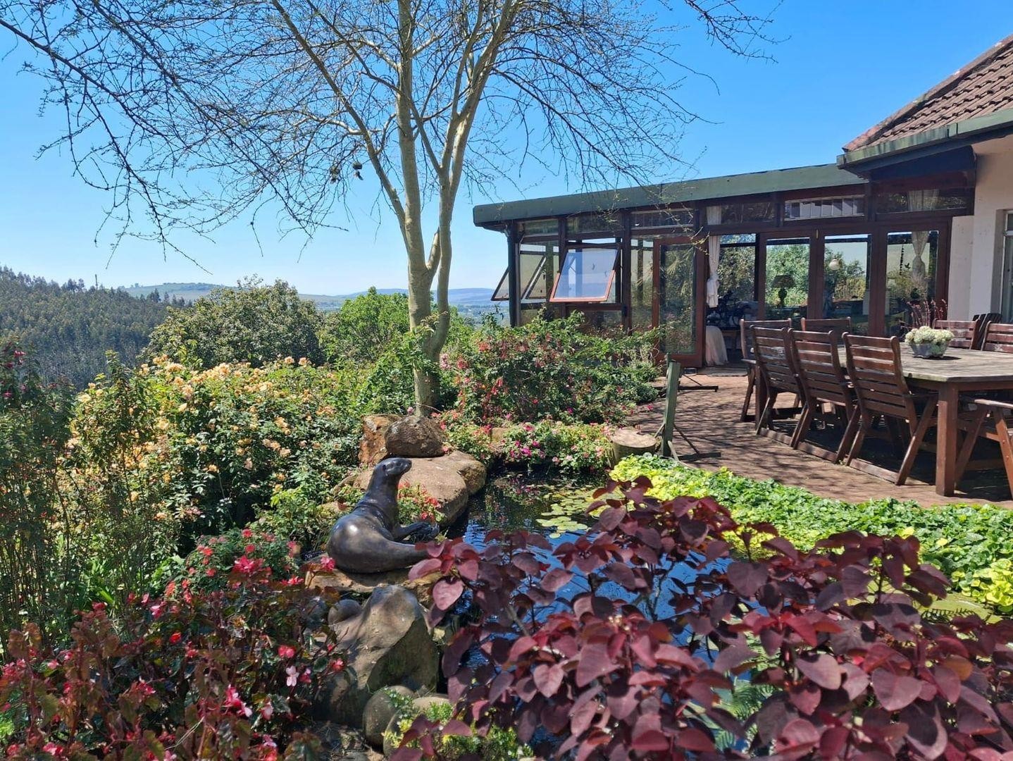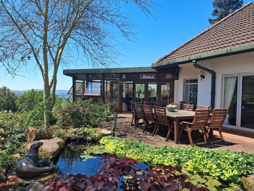 From this property, the views are absolutely breathtaking - overlooking Mondi Forest and far-reaching views to Umgeni Valley in the distance. The garden looks like something out of a magazine - beautifully landscaped, with mature trees, colourful plants, fruit trees, koi ponds, and even a thriving vegetable garden.