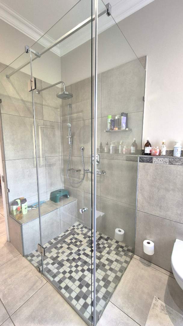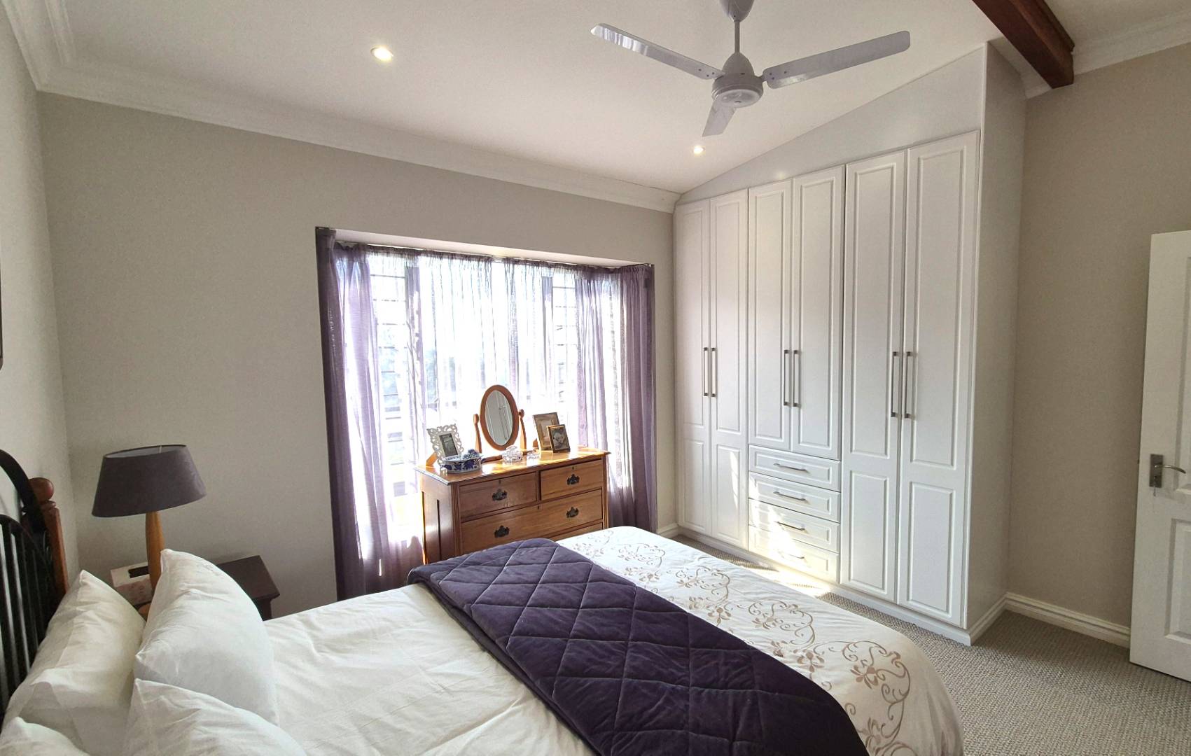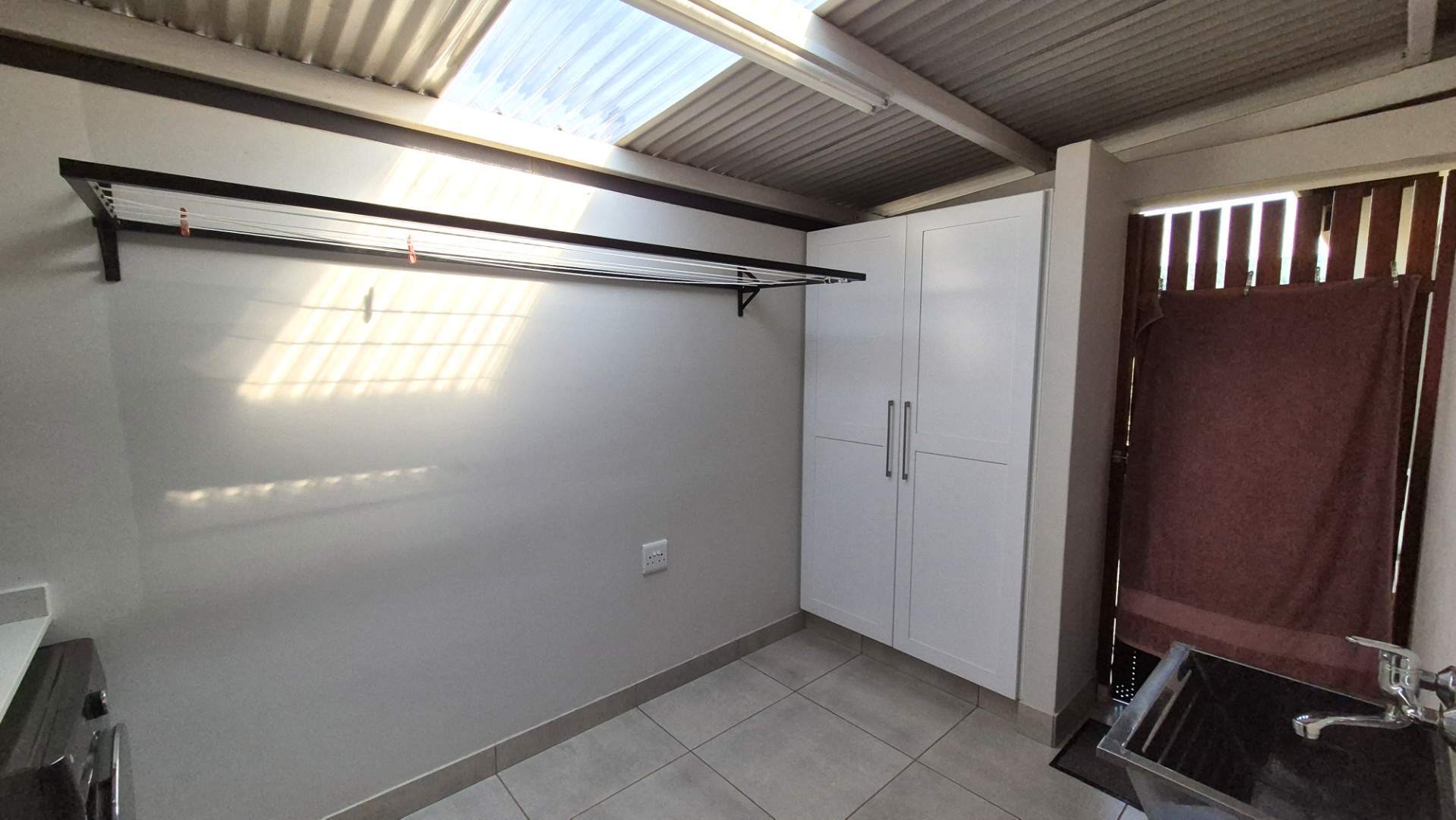 From the tarred driveway, you enter a double garage with direct access into the home. The garage is neatly fitted with a 5kW inverter connected to solar panels on the roof, giving you energy efficiency and peace of mind.