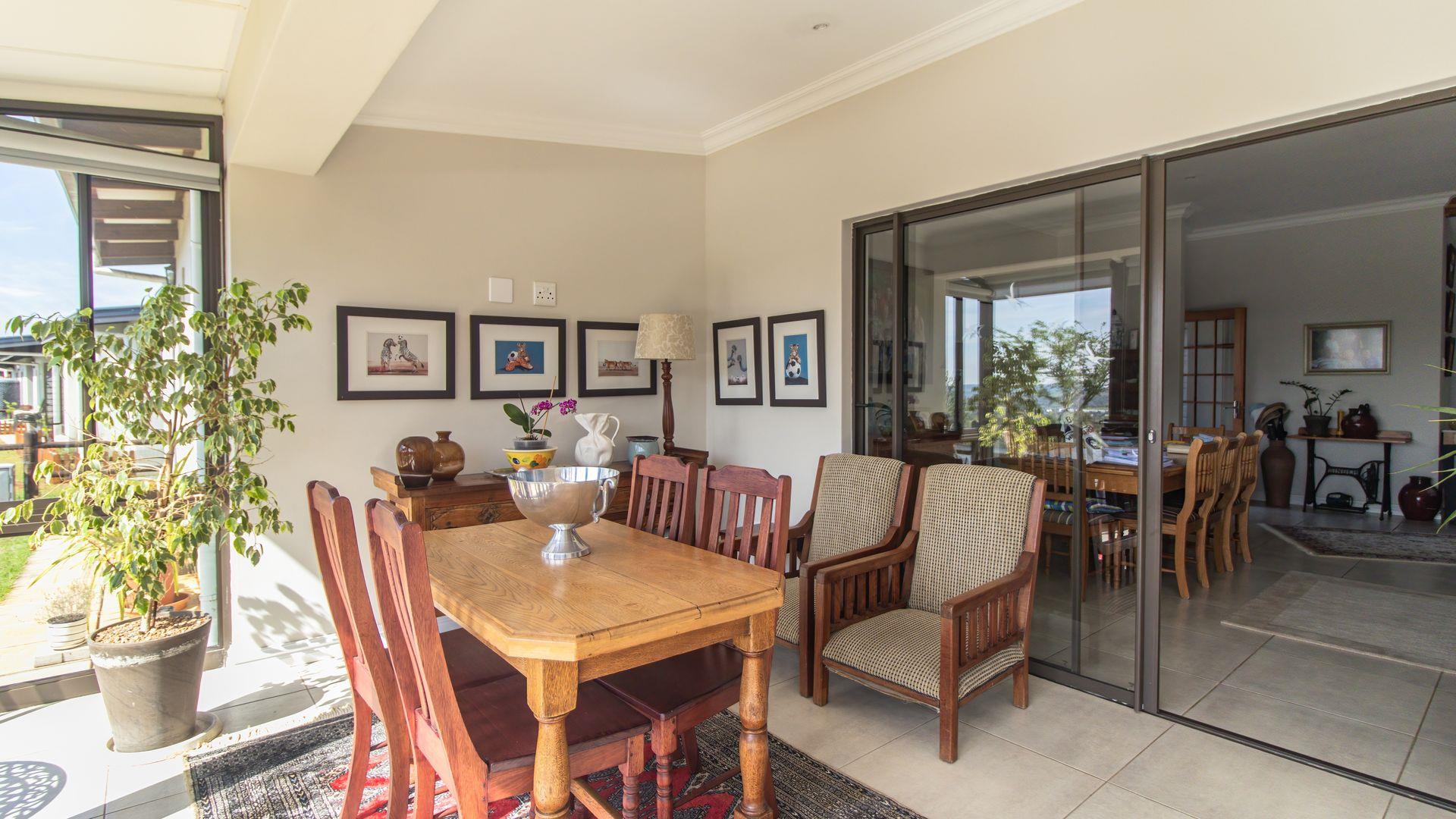 Step inside to a light and inviting open-plan living space, where the dining area, lounge, and kitchen flow seamlessly together. Downlights and tiled flooring create a fresh modern feel, while sliding doors open out to a spacious enclosed patio. With roll-down blinds, this versatile space is perfect as a second lounge or entertainment area. From here, stack doors lead to a paved seating area and the established garden, all while showcasing the home’s stunning north-facing views.