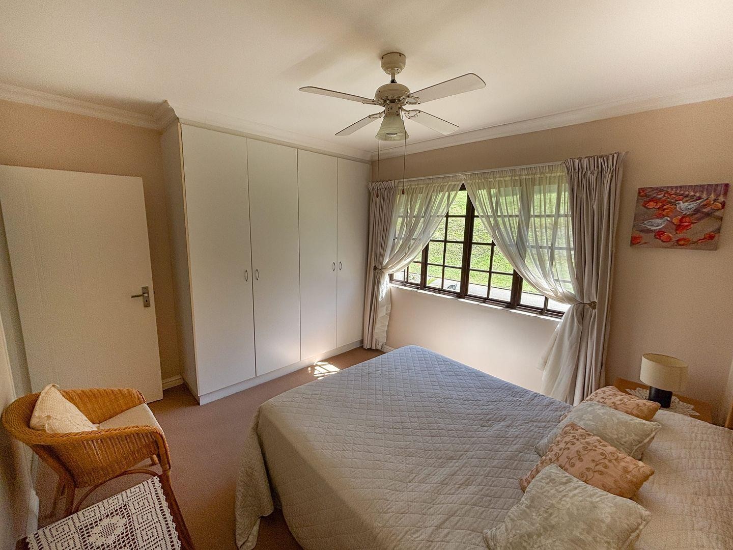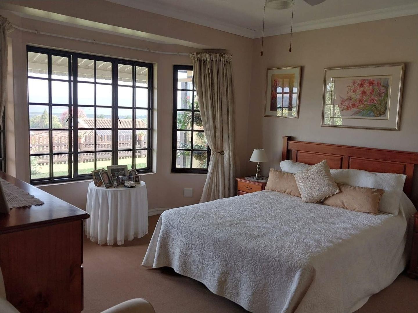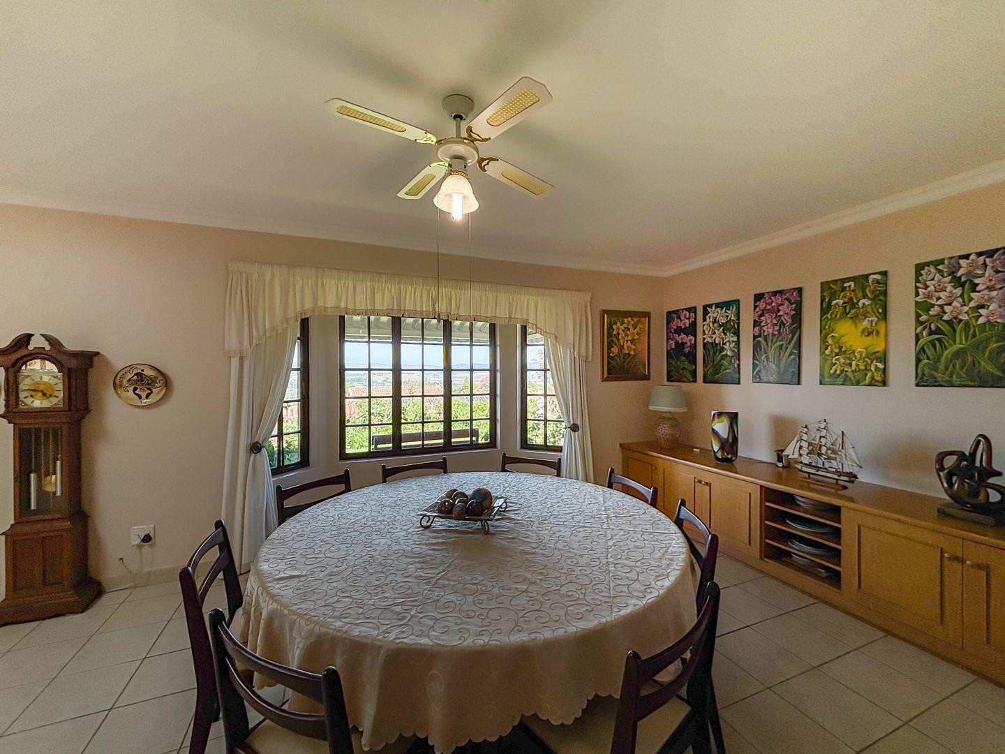 A passageway from the living area leads to the 3 large bedrooms, all with built-in cupboards. The main bedroom features a bay window and has an en-suite bathroom with bath, shower, basin and toilet. The other two bedrooms are served by a second bathroom which also has a bath, shower, basin and toilet. A bonus is a large linen cupboard in the passage.