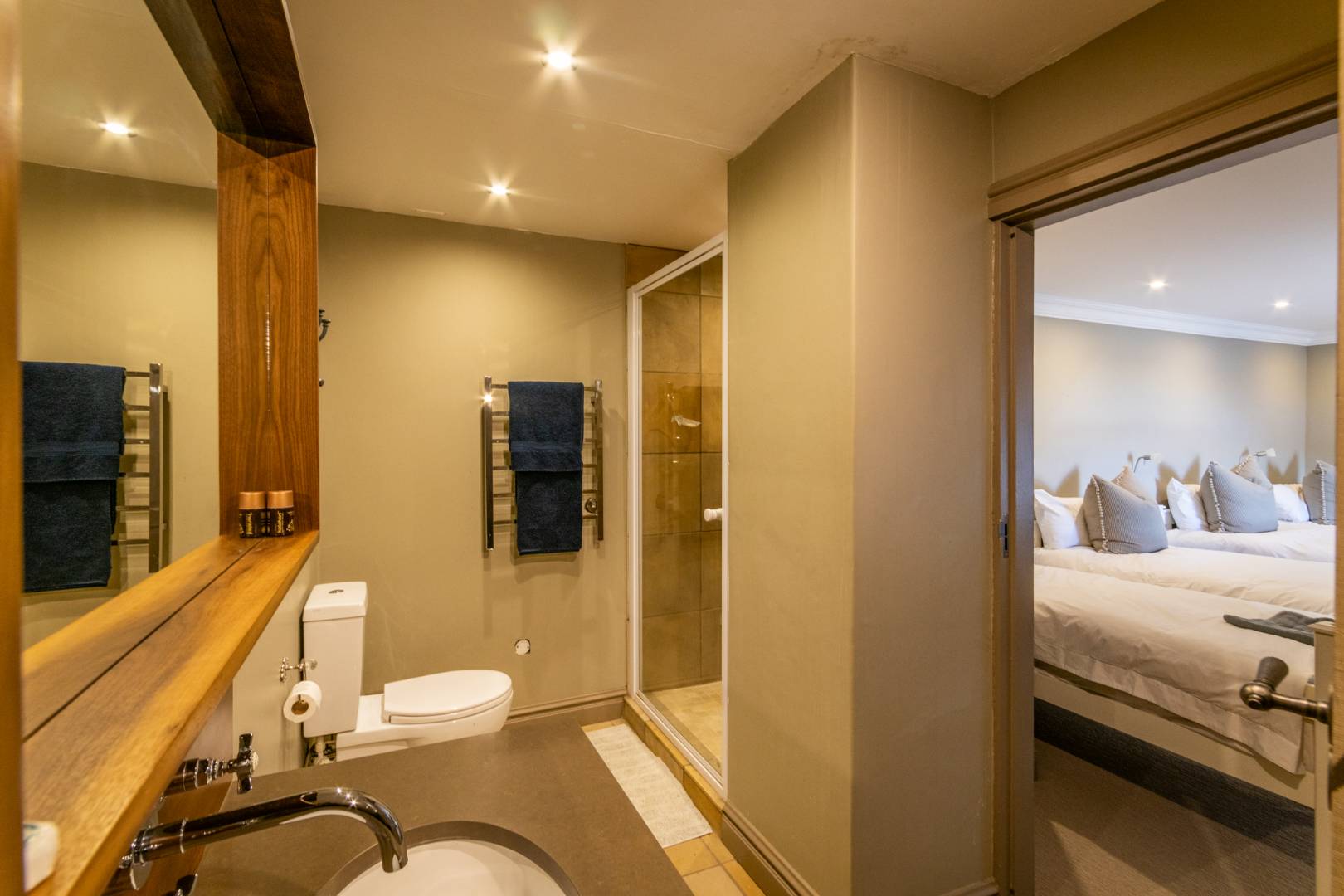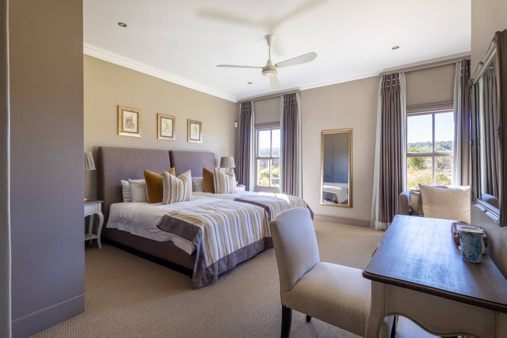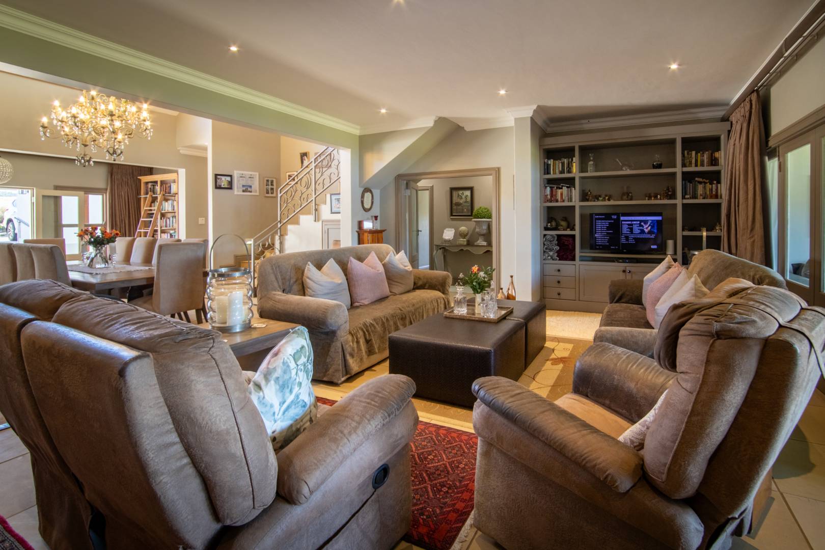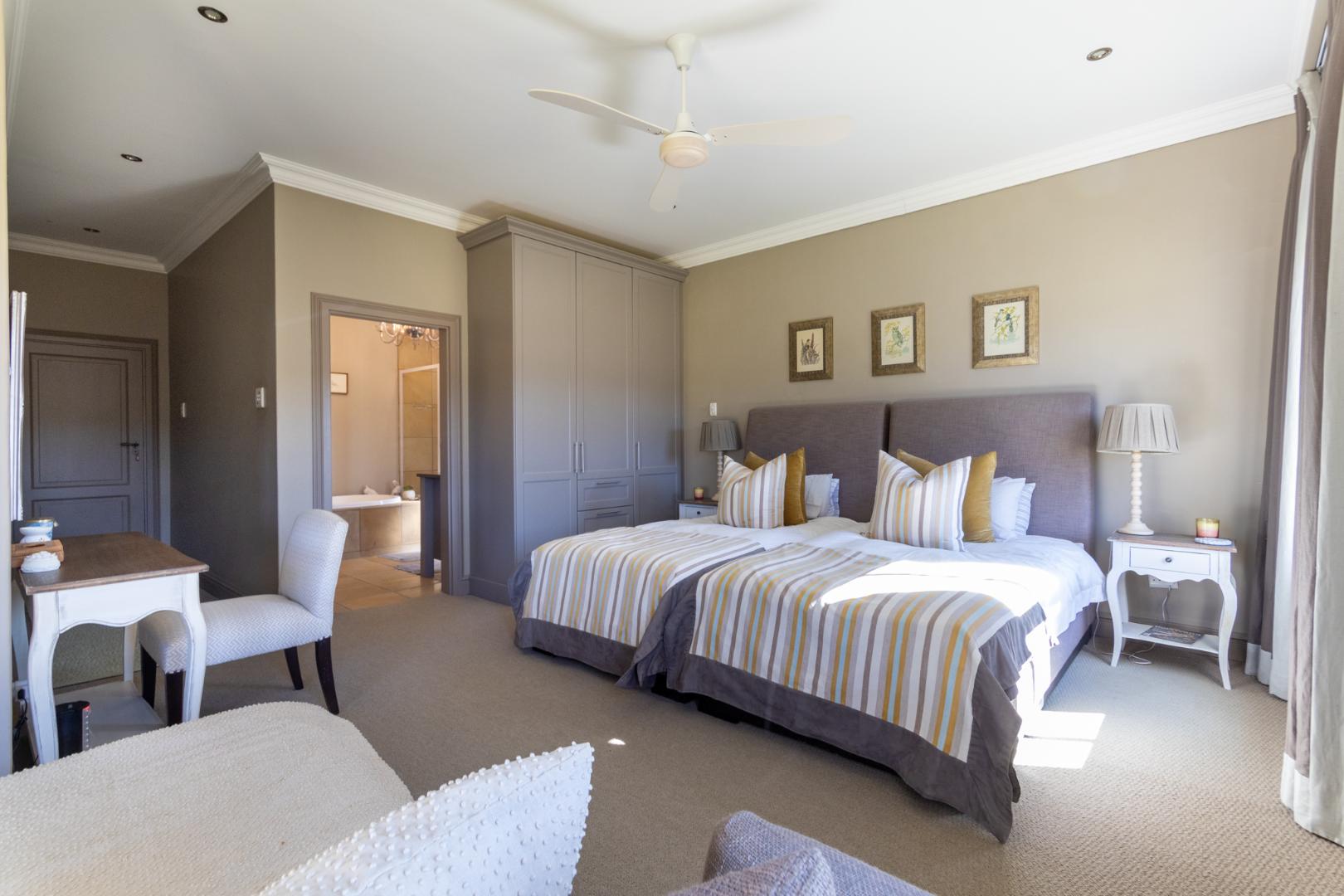 Each of the five bedrooms includes its own en-suite bathroom and built-in cupboards. Three offer picturesque dam views, while the fifth, located in a spacious loft, is perfect as a family games room or teen retreat.