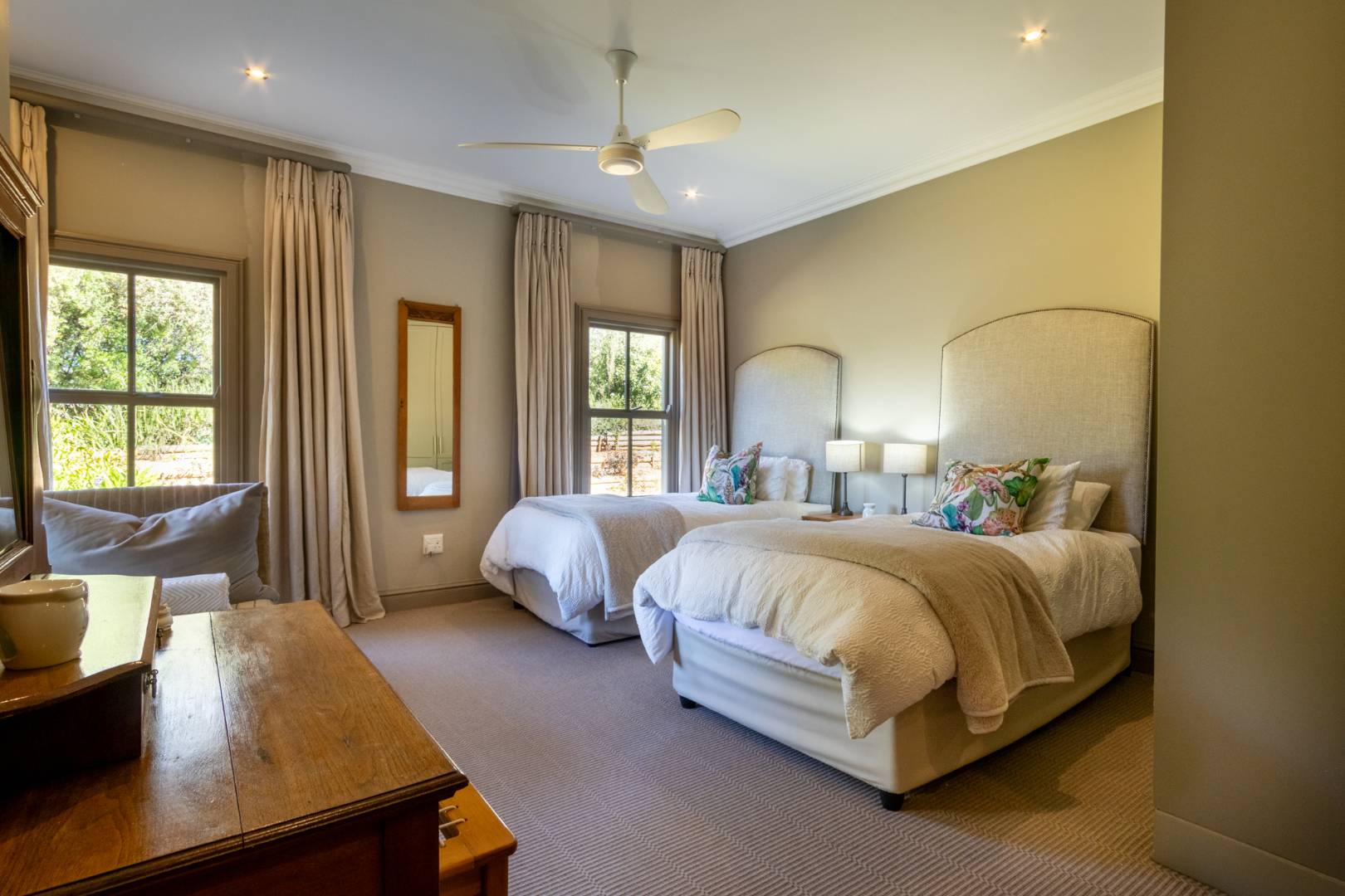 A separate flatlet with private entrance, bathroom, and kitchenette offers flexibility for guests, staff, or rental use.