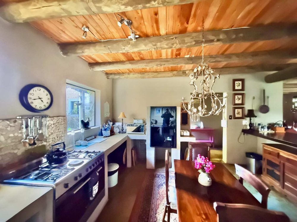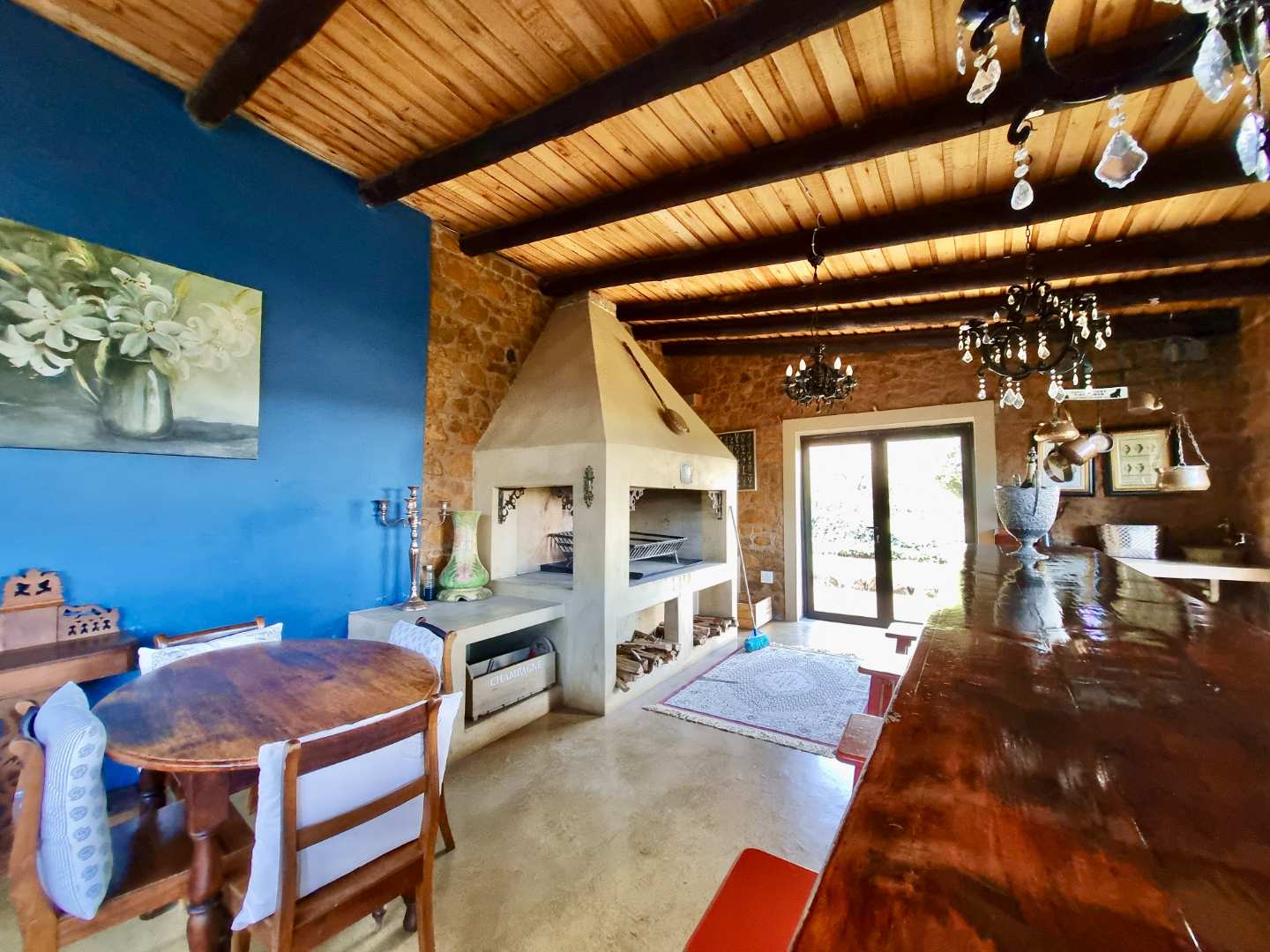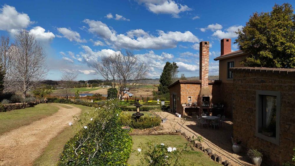 Character and warmth flow throughout - from the spacious lounge to the long, rustic dining room with its inviting fireplace and reading nook. The kitchen is fully equipped with a gas-electric stove, a large scullery, and everything needed for both family living and professional event catering. A cozy bar with its own fireplace opens through French doors to two sun-soaked patios that frame the serene views.