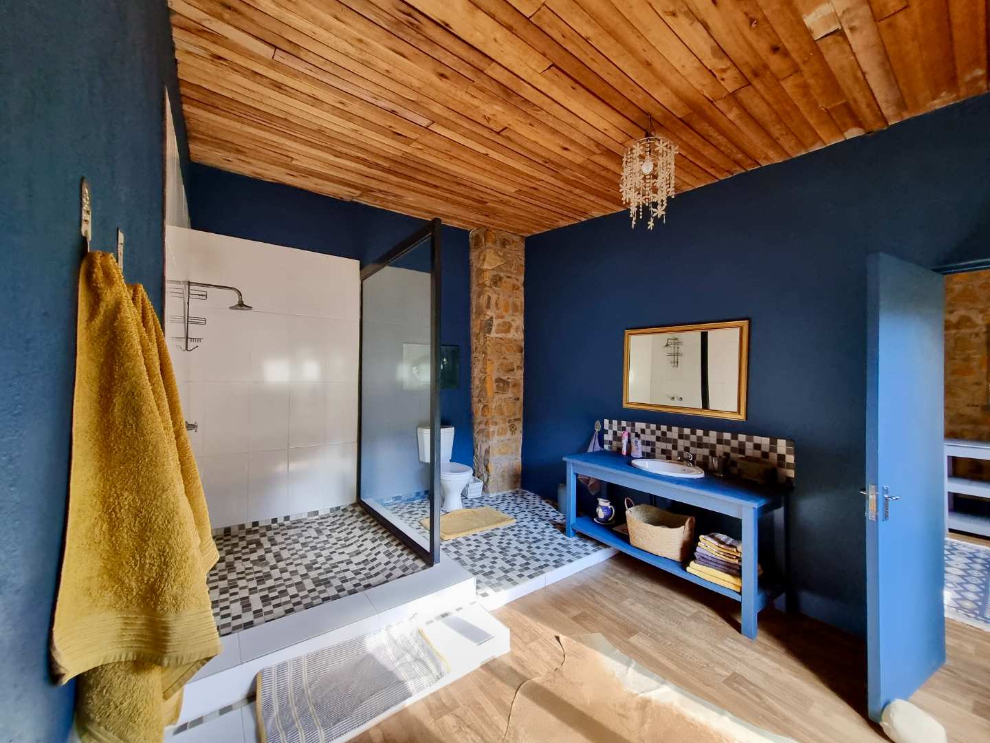 The main residence boasts five generously sized bedrooms and expansive living spaces tailored for both comfort and entertaining. The ground floor includes two en suite bedrooms, while upstairs houses three additional rooms, including a luxurious primary suite with an open-plan bathroom and a bespoke dressing area.