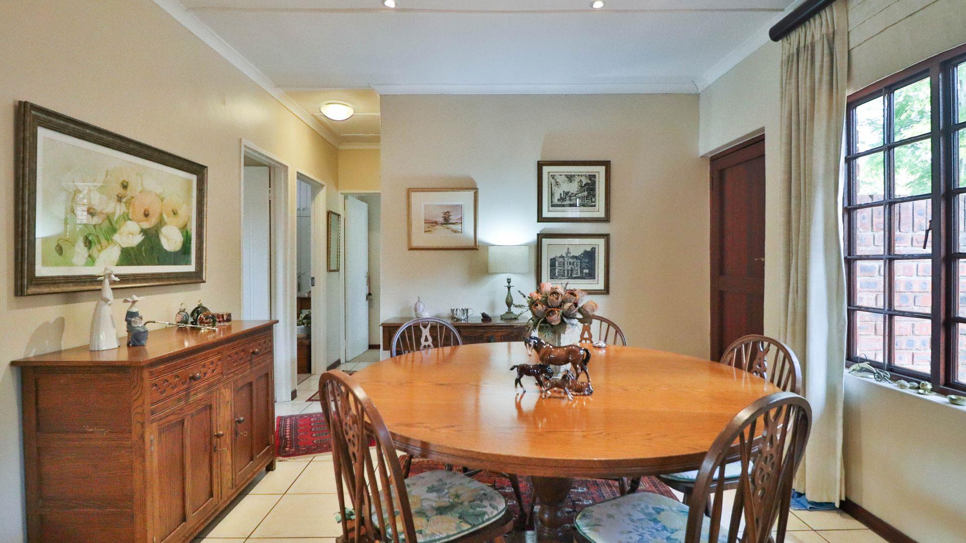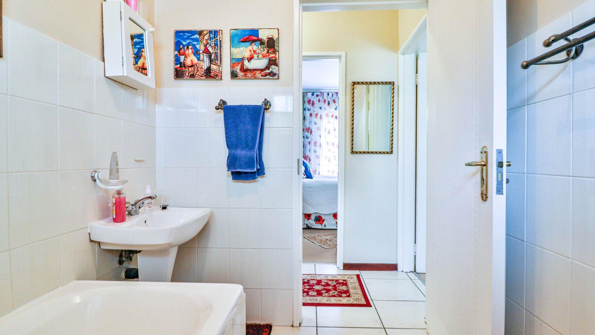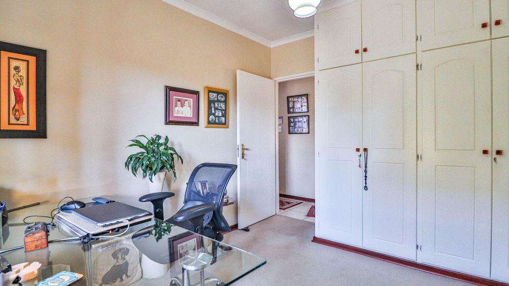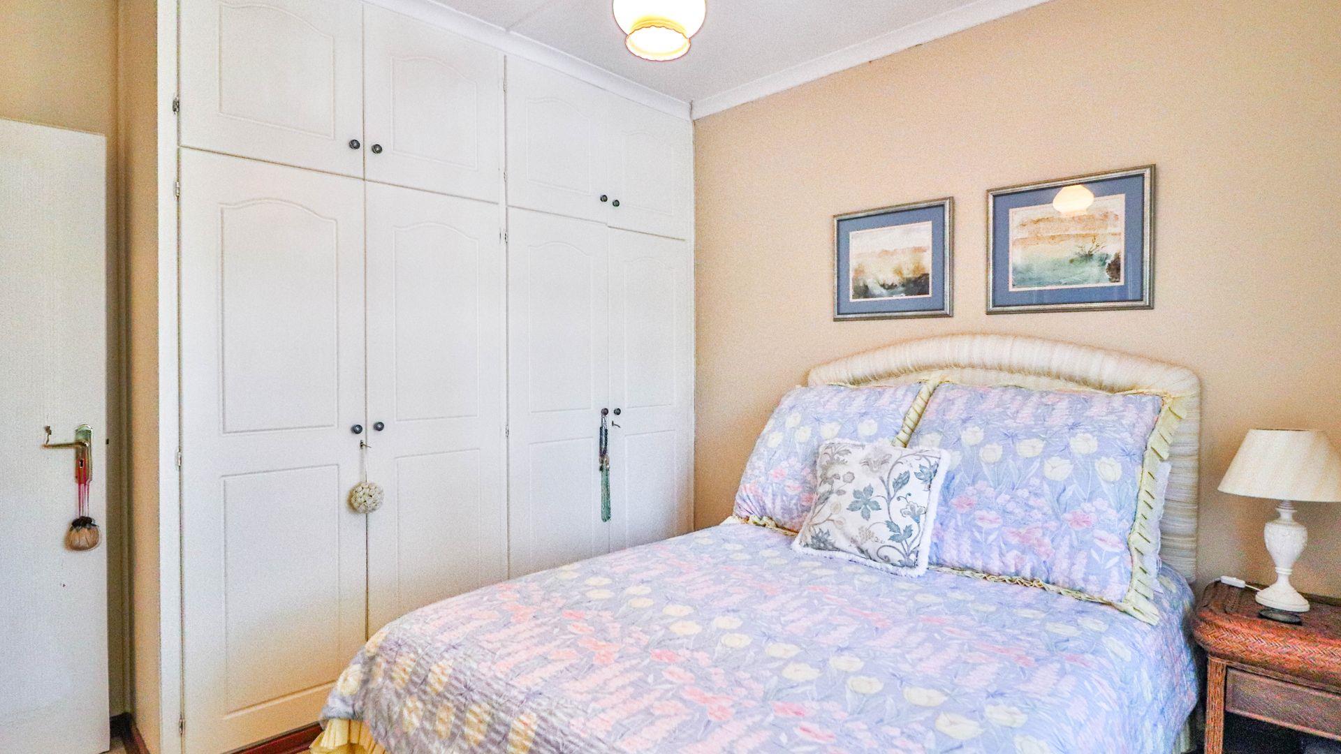 Set in a small complex of only five facebrick units, it’s wonderfully private and peaceful. The tarred driveway takes you to the single garage and front door, where you step into a bright, open-plan living space. The kitchen and dining area flow together easily, making it simple to cook, chat, and entertain all at once. The kitchen includes a breakfast counter, built-in oven and hob, a double sink, and plenty of cupboard space, with room for your undercounter appliance.