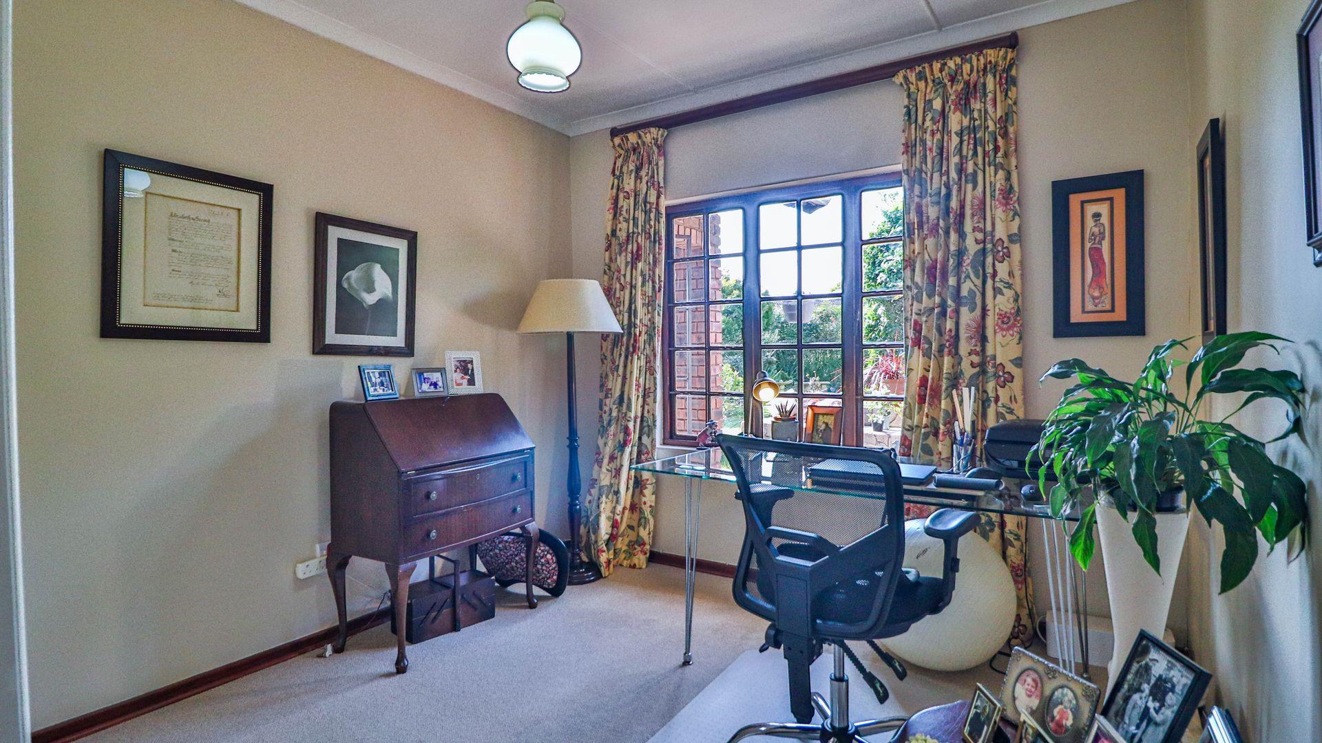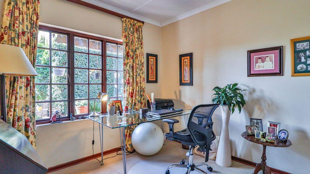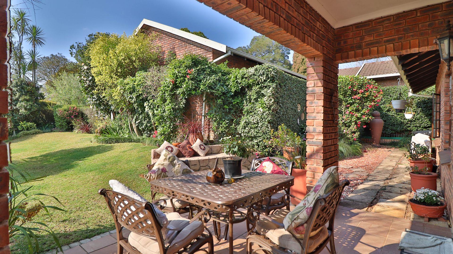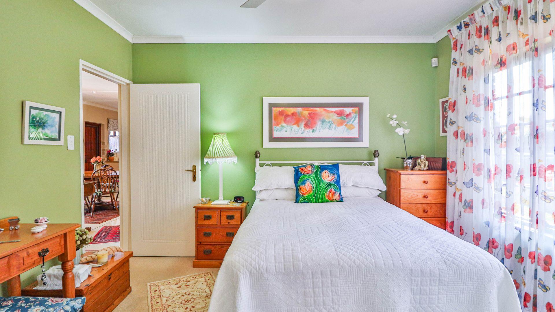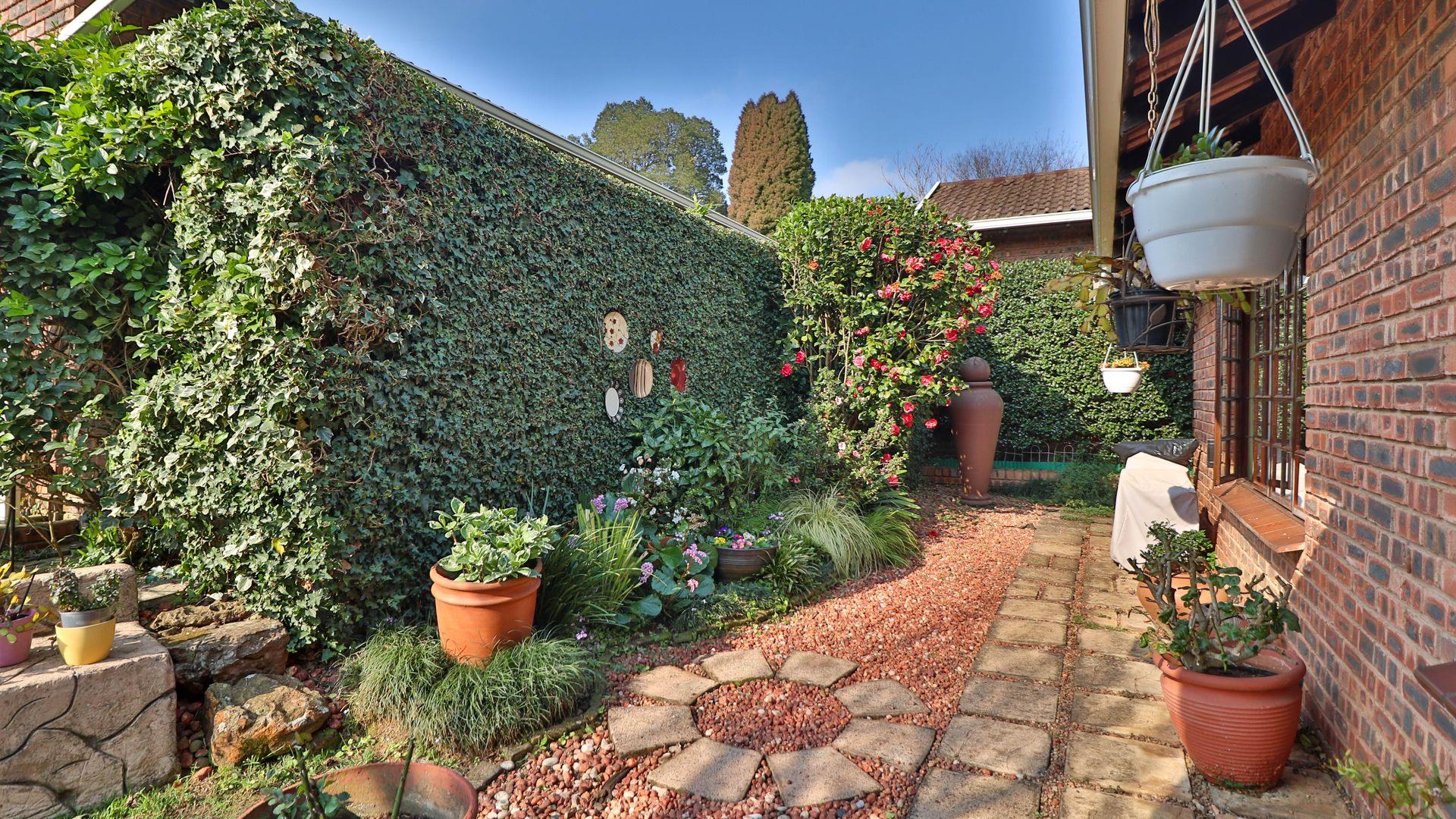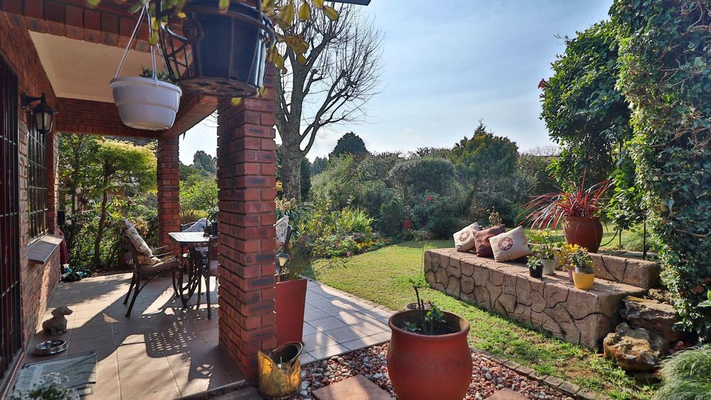 The lounge is light and inviting, with downlights adding a warm touch. A large wooden door opens onto a covered patio that looks out over the established garden. The garden is fully fenced and alive with birds. It is a peaceful retreat where you can unwind or enjoy a quiet afternoon in the sun.