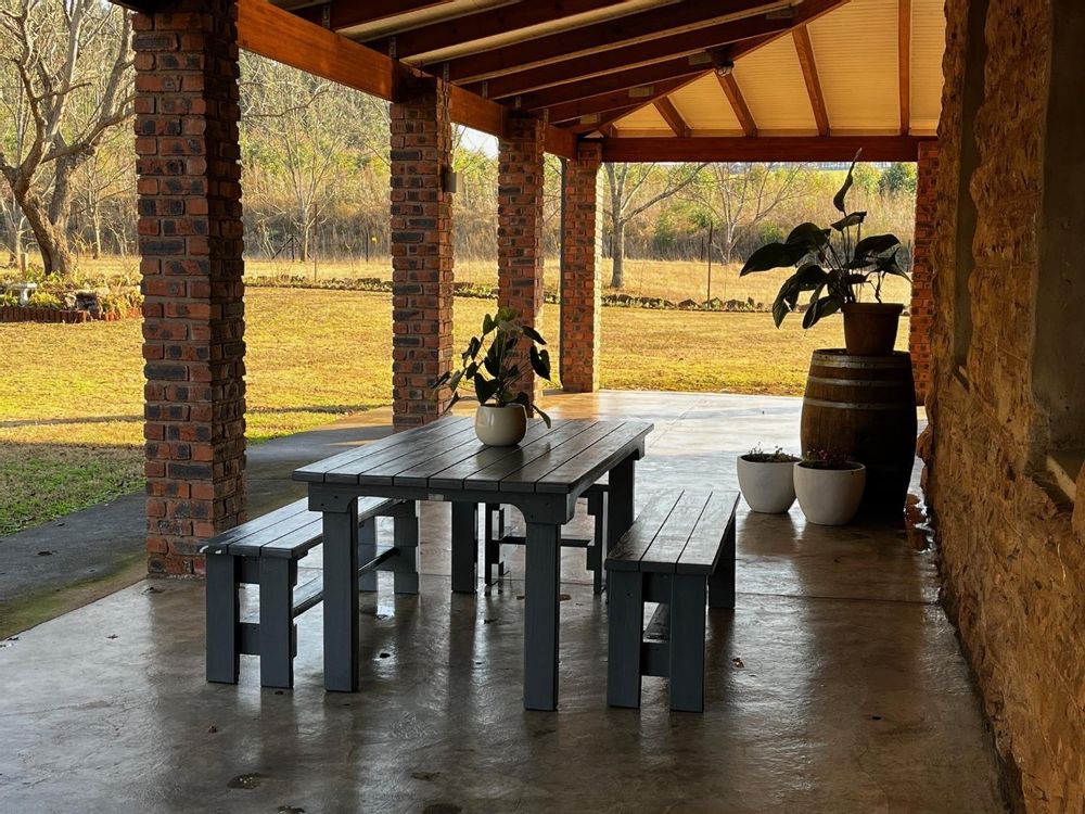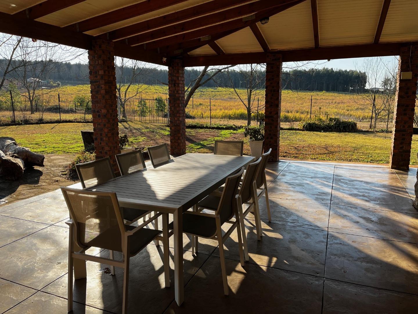 Step through a hand-crafted branch arch and discover the outdoor firepit—a magical setting for evening sundowners, storytelling, or stargazing under wide country skies. The home is also protected by an electric fence, ensuring a secure environment without compromising on the relaxed, rural feel.