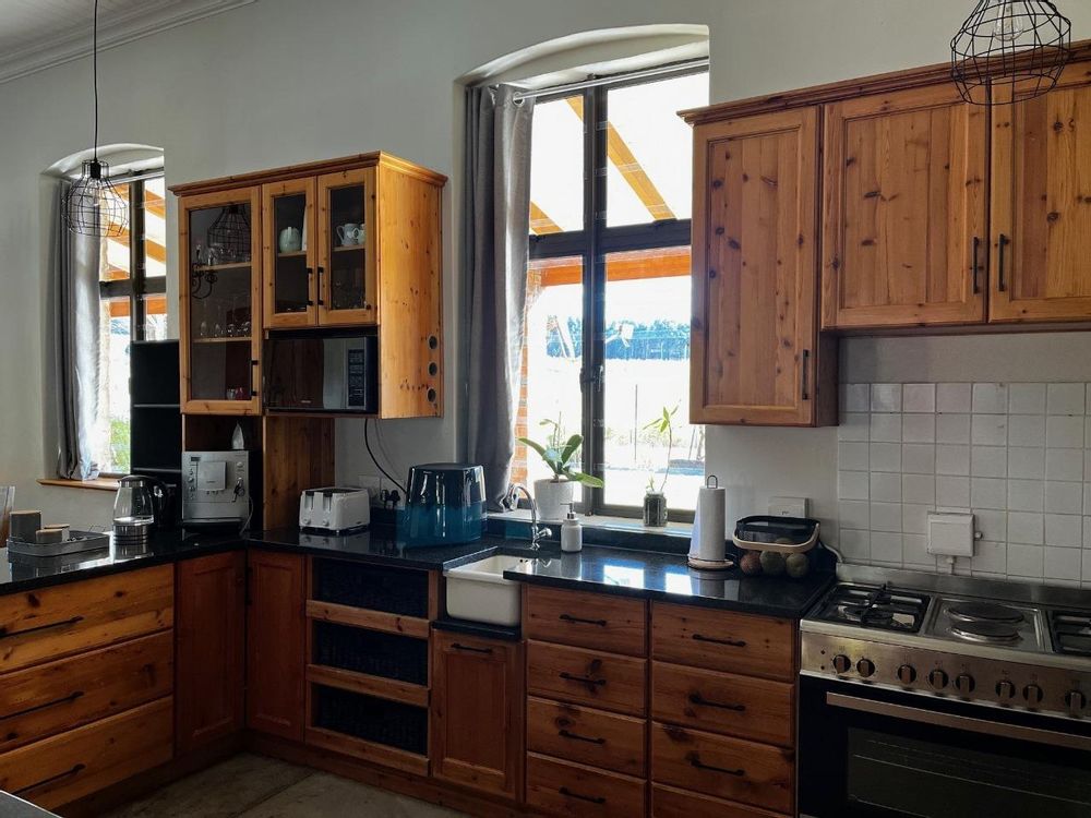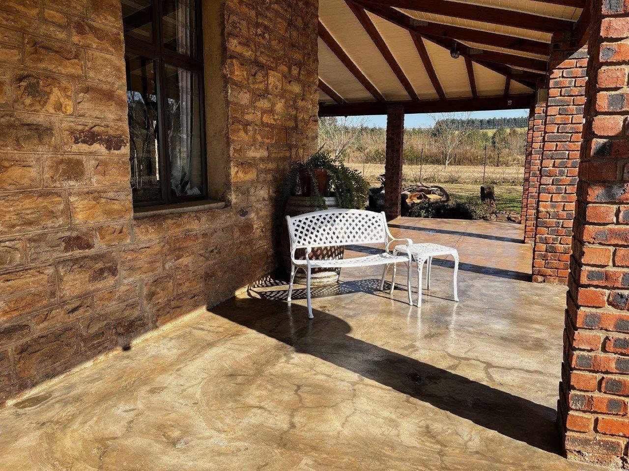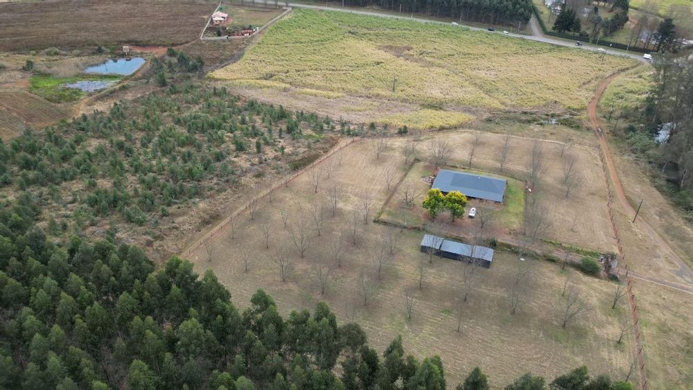 The home is surrounded by three adjoining erfs, offering a combined land size of just over 4 hectares. Mature pecan nut trees, lush grazing pastures, and wide-open views create an ideal environment for small-scale farming, hobby agriculture, or simply enjoying the peaceful, rural lifestyle.