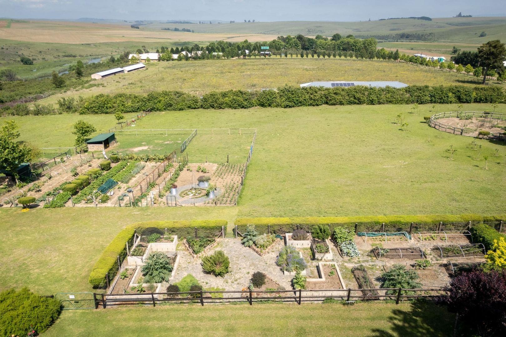 The property has been set up with long-term use in mind. The main house and one cottage are supported by solar and inverter systems. The Little Mooi River forms one of the property boundaries and serves as a direct water source, with water pumped and managed through a filtration and storage system. There are established vegetable gardens, orchards, a berry structure, a chicken coop and bee hives, supporting a productive and more self-sufficient lifestyle.