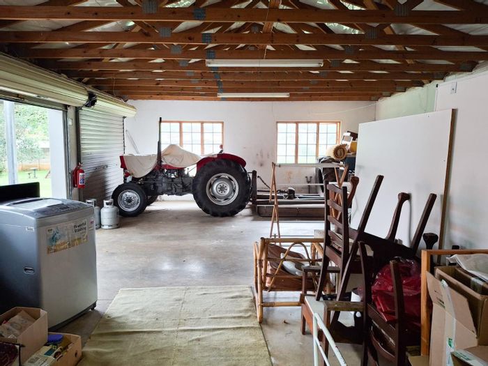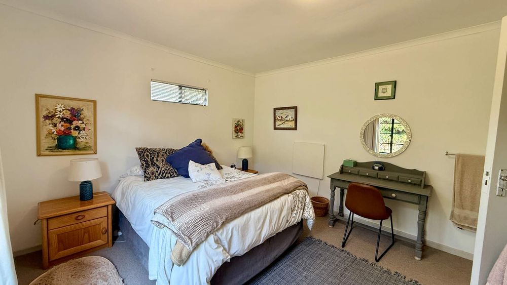 At the heart of the property is a warm, traditional home that feels instantly welcoming. With three comfortable bedrooms, including a main ensuite, and 2.5 bathrooms, there’s room for the whole family. The home has both an enclosed sun veranda—perfect for cosy winter mornings—and an open veranda where you can soak up sweeping garden and countryside views. Inside, the farm-style kitchen is designed for family living, complete with a gas stove top, double Defy ovens, and a mudroom and scullery for added practicality. While most of the home is tiled, the carpeted main bedroom and lounge add an extra touch of warmth and comfort.