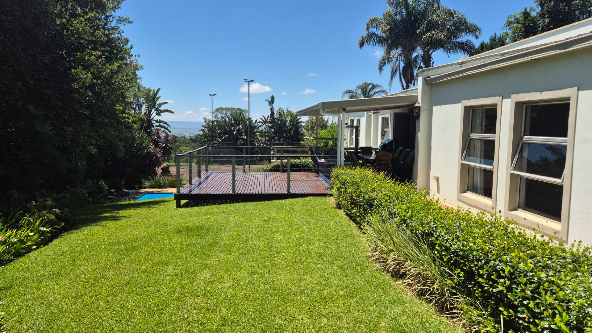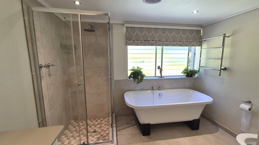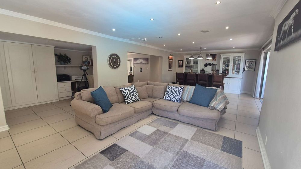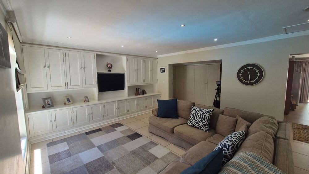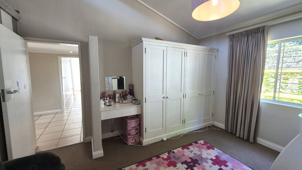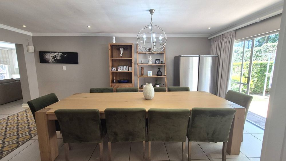 Tucked away at the end of a quiet, private cul-de-sac, this charming split-level home offers space, versatility, and warmth in an idyllic setting. A sloping tarred driveway leads down to the double garage and double carport, complete with a built-in cupboard. A conveniently placed door provides direct access into the scullery—perfect for offloading groceries with ease.