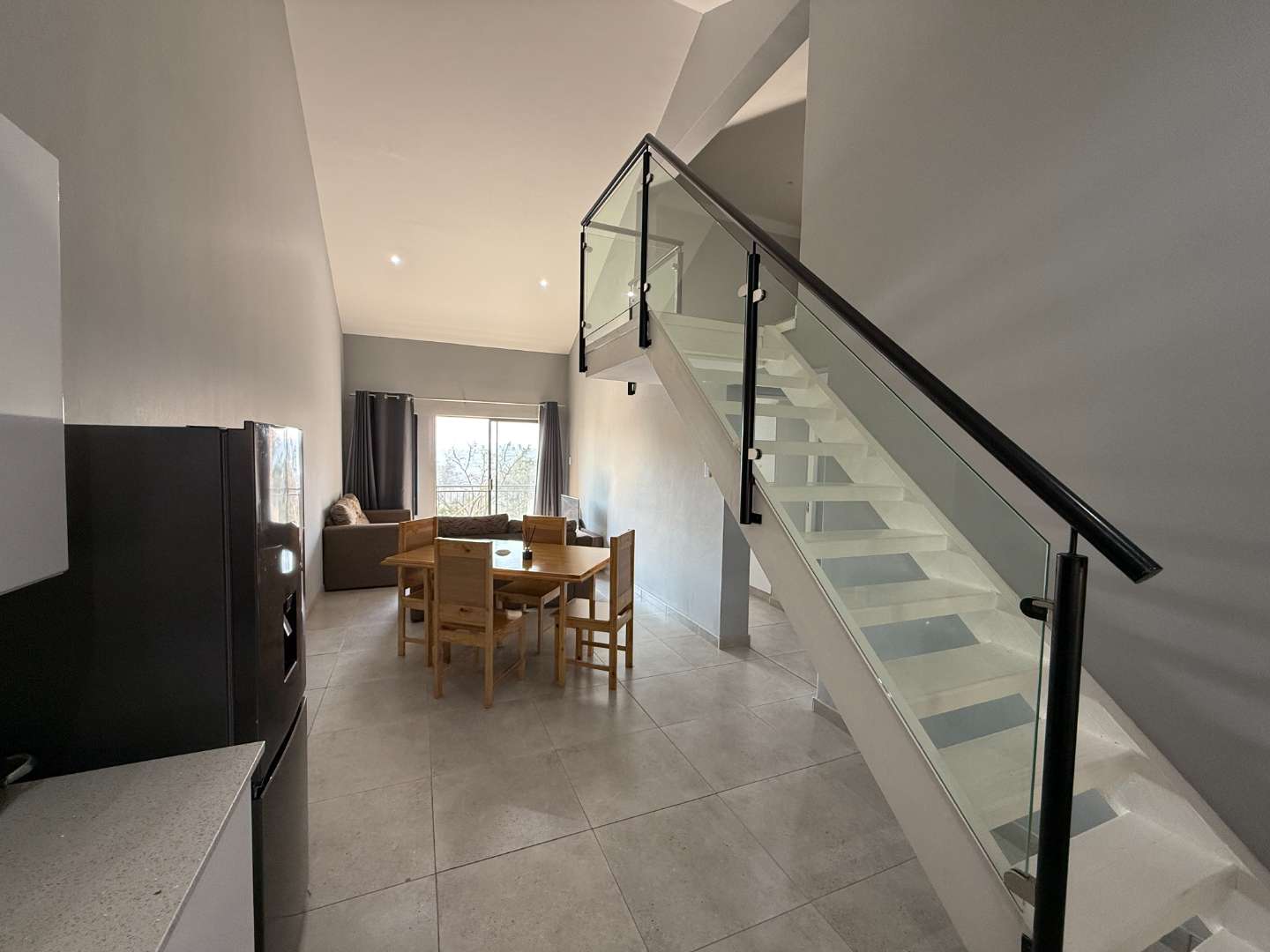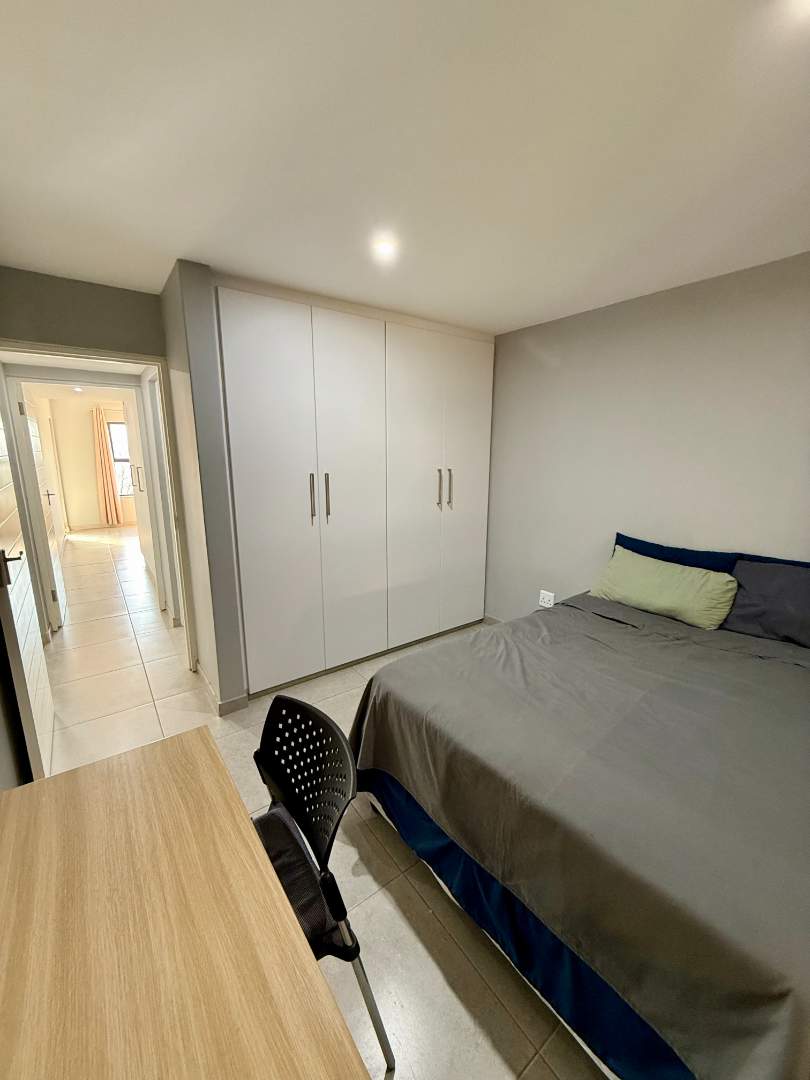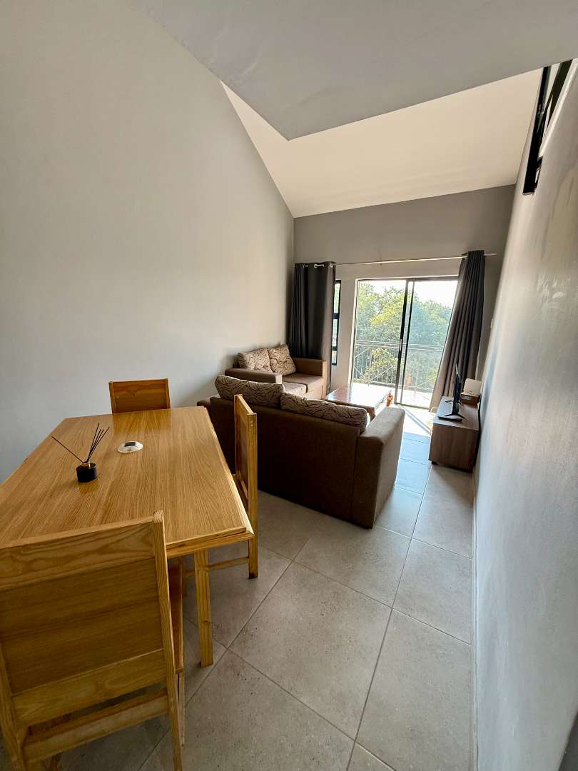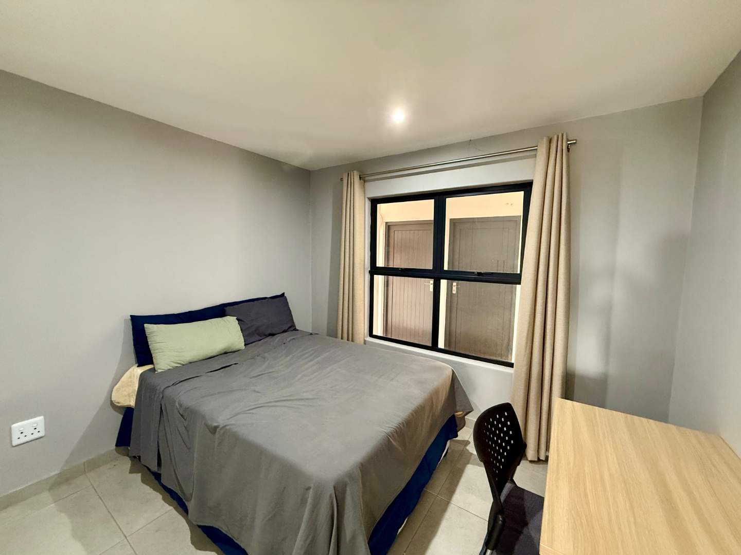 Inspired by Pietermaritzburg’s signature redbrick architecture, the apartment features clean lines and a minimalist aesthetic. The open-plan living area includes a sleek kitchen and a lounge, with tiled flooring throughout for a fresh and low-maintenance finish. Glass sliding doors lead to a private, elevated balcony, perfect for relaxed mornings or unwinding after work.
