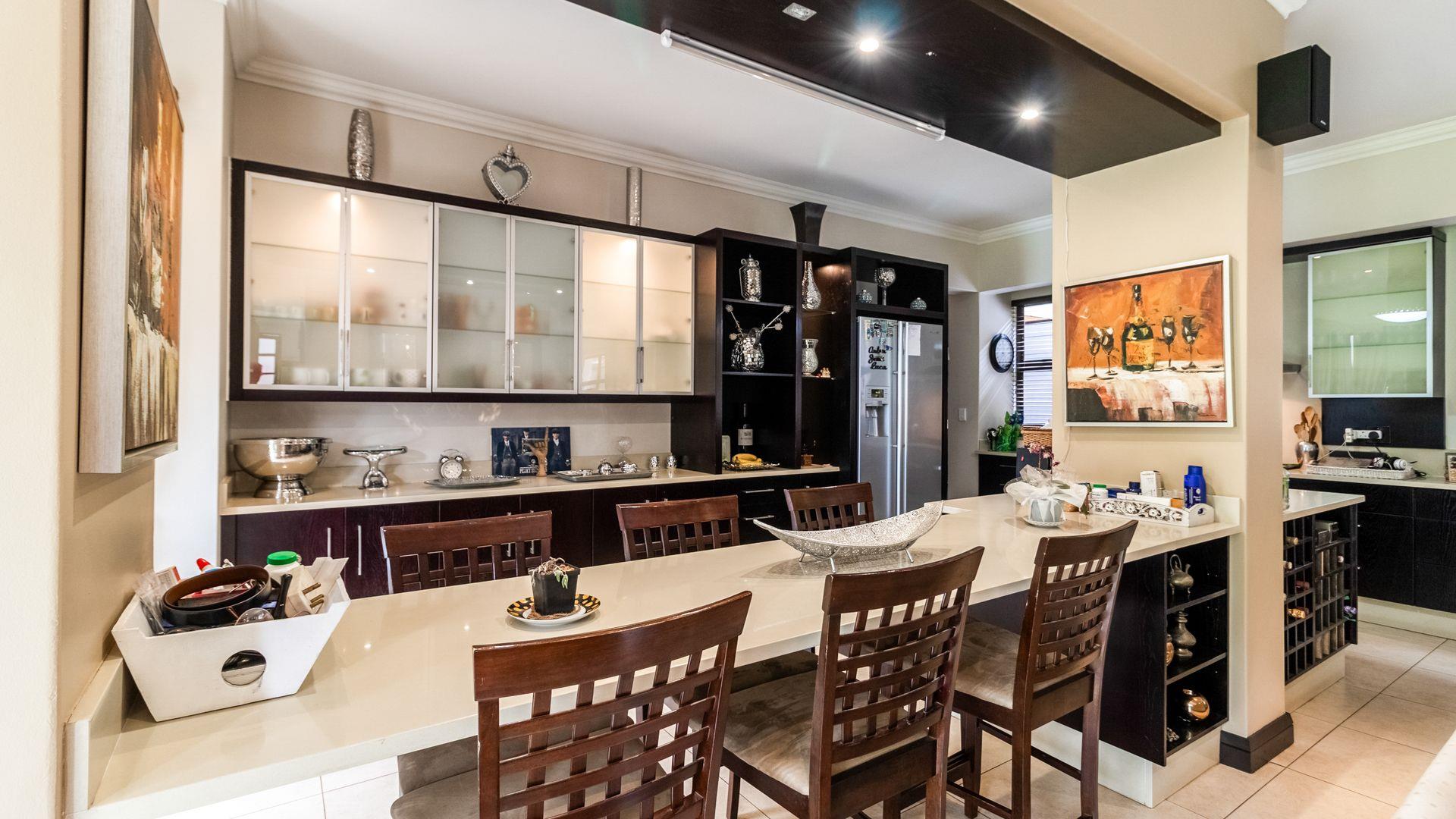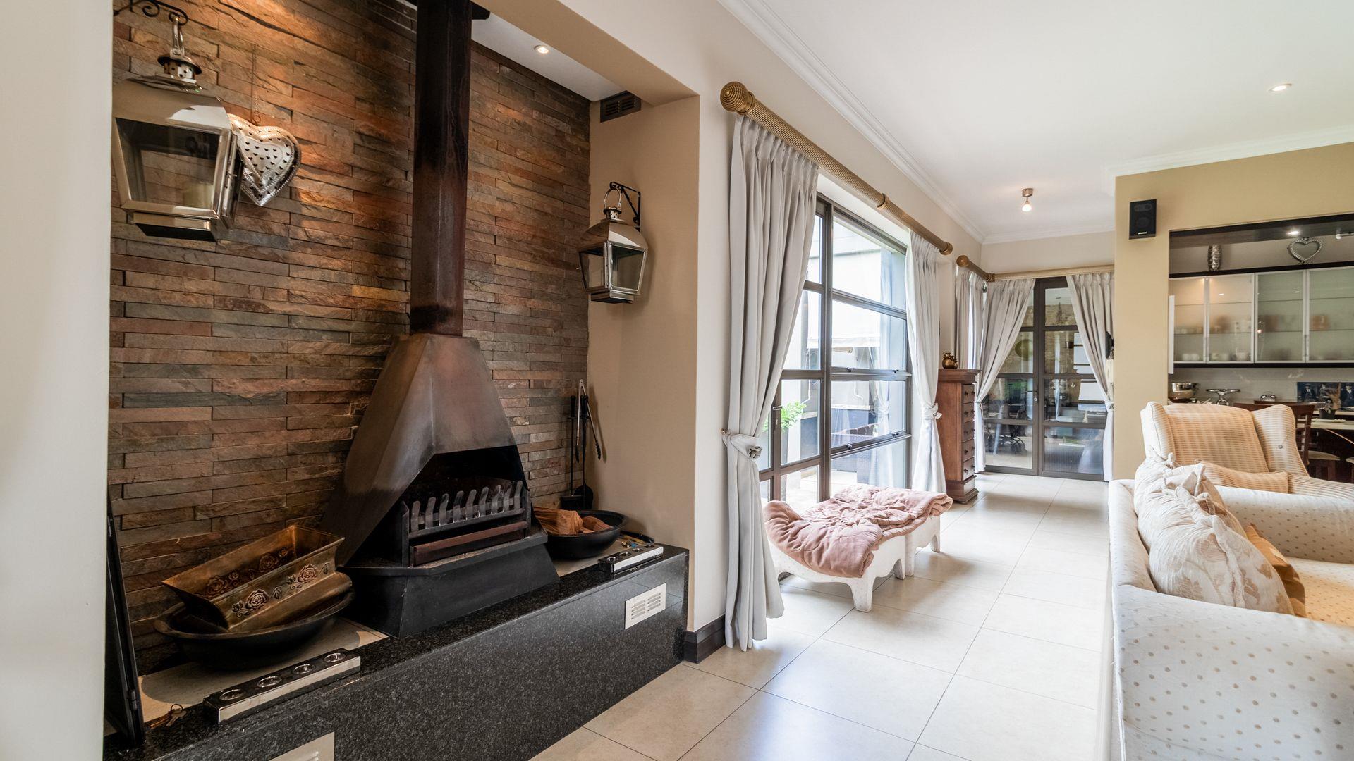 Step inside and be welcomed by open-plan living spaces that flow effortlessly from the stylish, modern kitchen — complete with a breakfast counter and separate scullery — to a cozy lounge featuring a fireplace and a separate dining area, ideal for family gatherings and entertaining.
